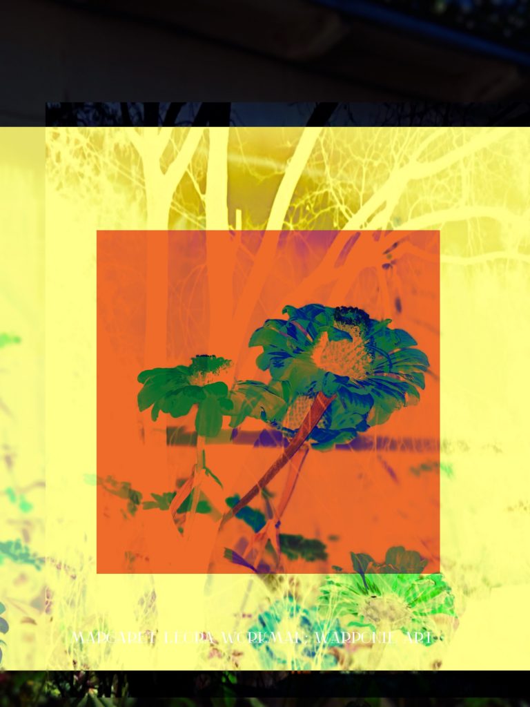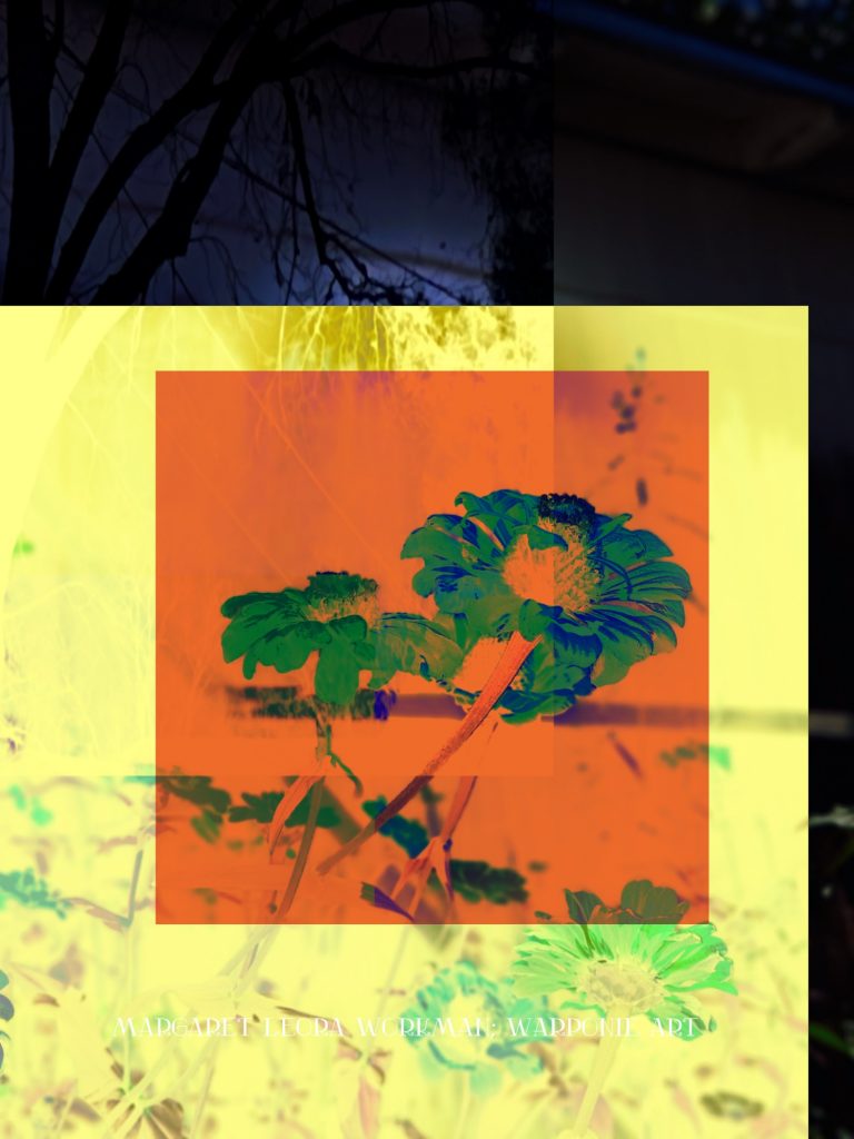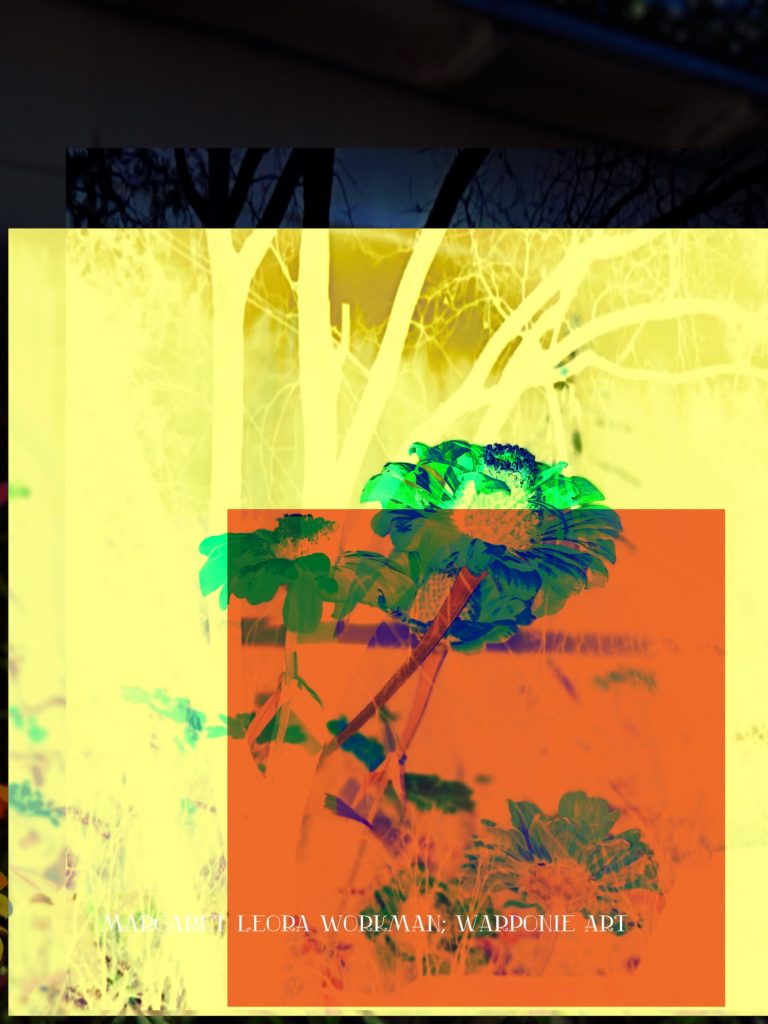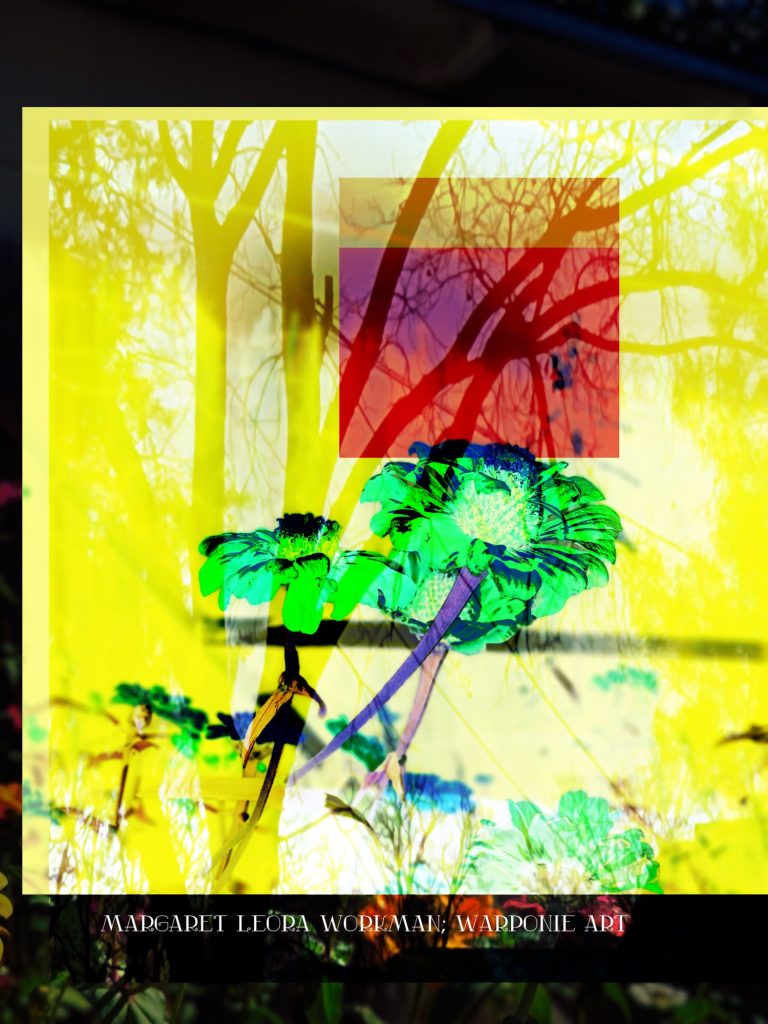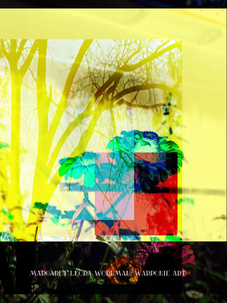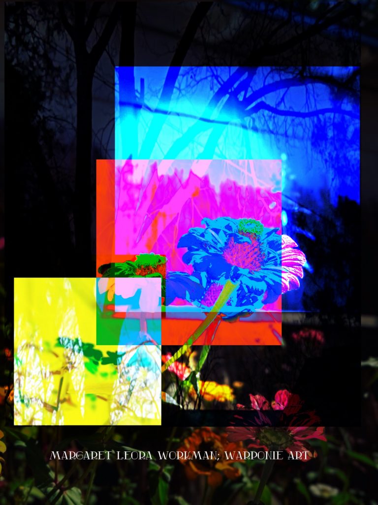 I blended these photos together on phonto that I had taken and also some squares that I added into the picture as well. The zinnias are of my zinnias that I had planted this last summer, my bathroom door and a tree that is in my alley. This door is so nice! I forgot what it looked like before my dog Poppy decided to mangle it and splinter it. It’s my fault for tying his leash near the door.