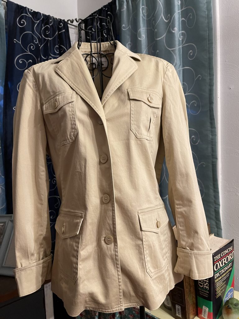 This is a jacket that I have for sale on EBay for 7.00. Liz Claiborne! I absolutely love Liz Claiborne because it is such a classic style yet casual. I have many other things for sale in my EBay account. All clothing is 7.00 each but you can make an offer of 6.00. I have a lot of art for sale too. user name pinetr_5611 I am trying to get more jackets up that I have. Thanks! Margaret Workman; Warponie Art