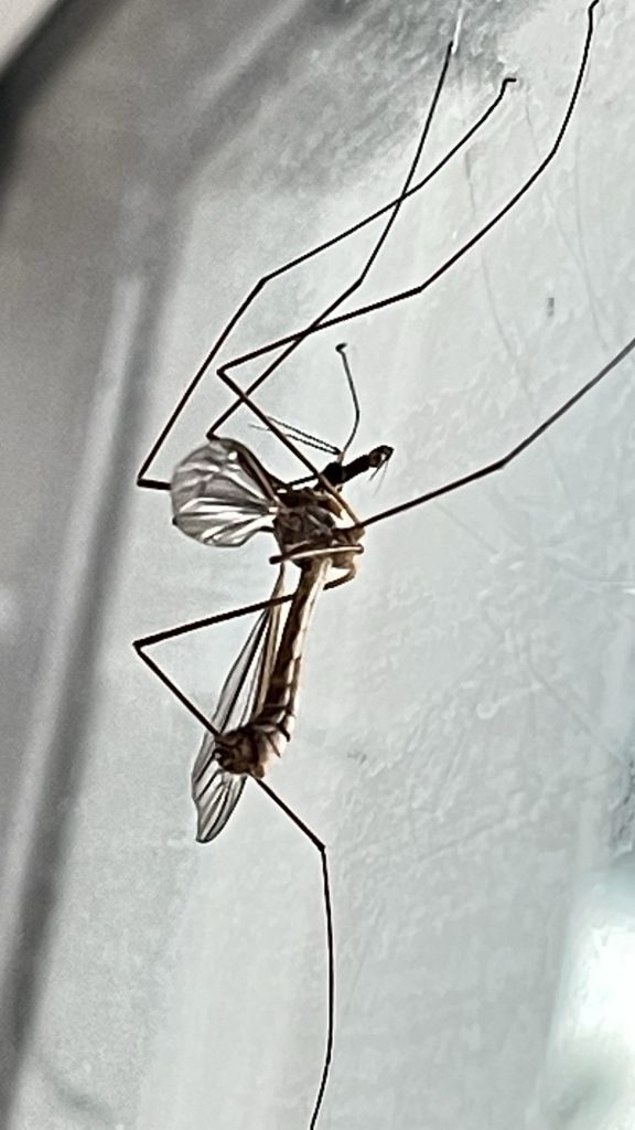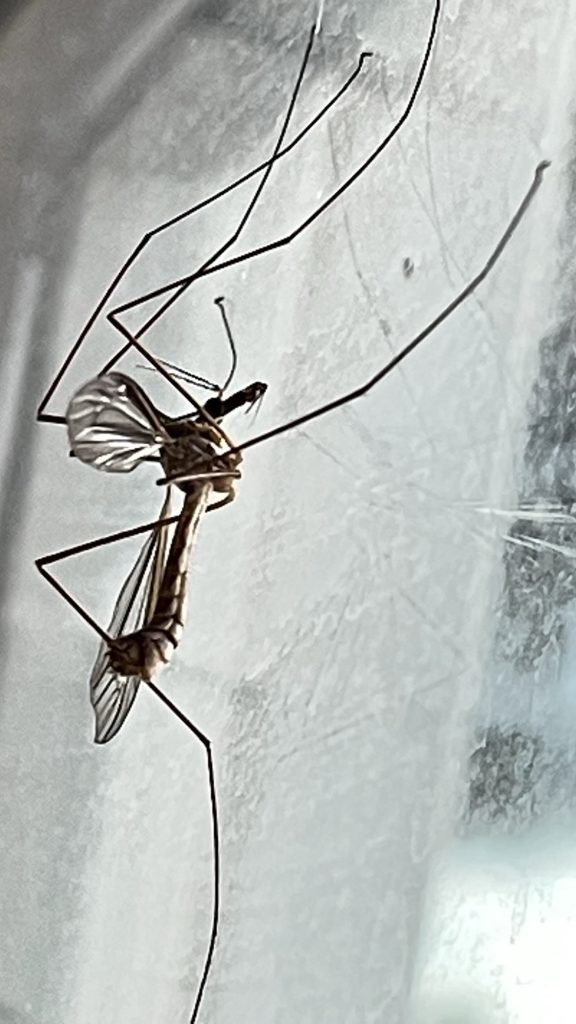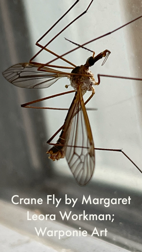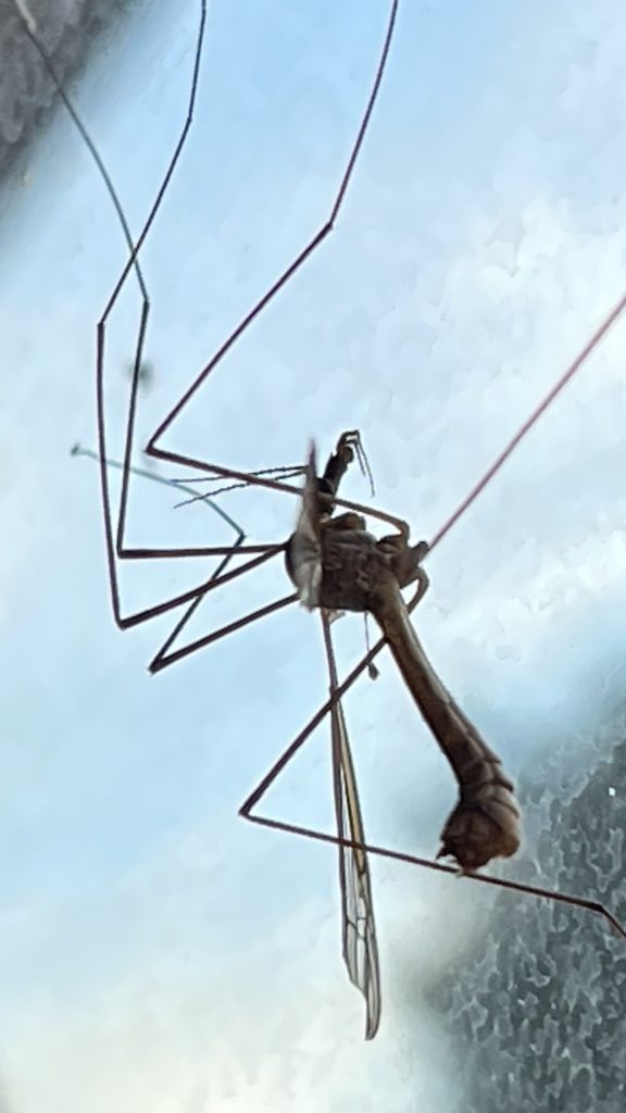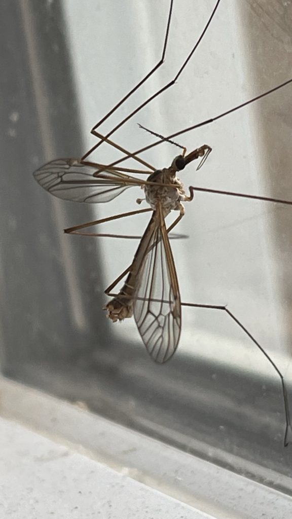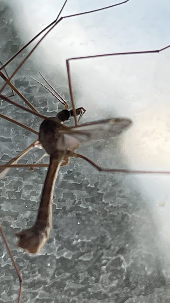 Crane flies are harmless and very important. They eat decaying matter, They pollinate flowers, and they are apart of the ecosystem. They are food for other animals. they remind me of very large mosquitoes! A person can easily catch these just like any other bug in a cup with a random piece of paper and put them outside, unharmed. I love his little face! So sweet! 🩷 did you ever think a crane fly could look like this? I bet they have fun personalities and listen to music just like you and me. But their music are air and water particles bursting in the air. They are the lucky ones.