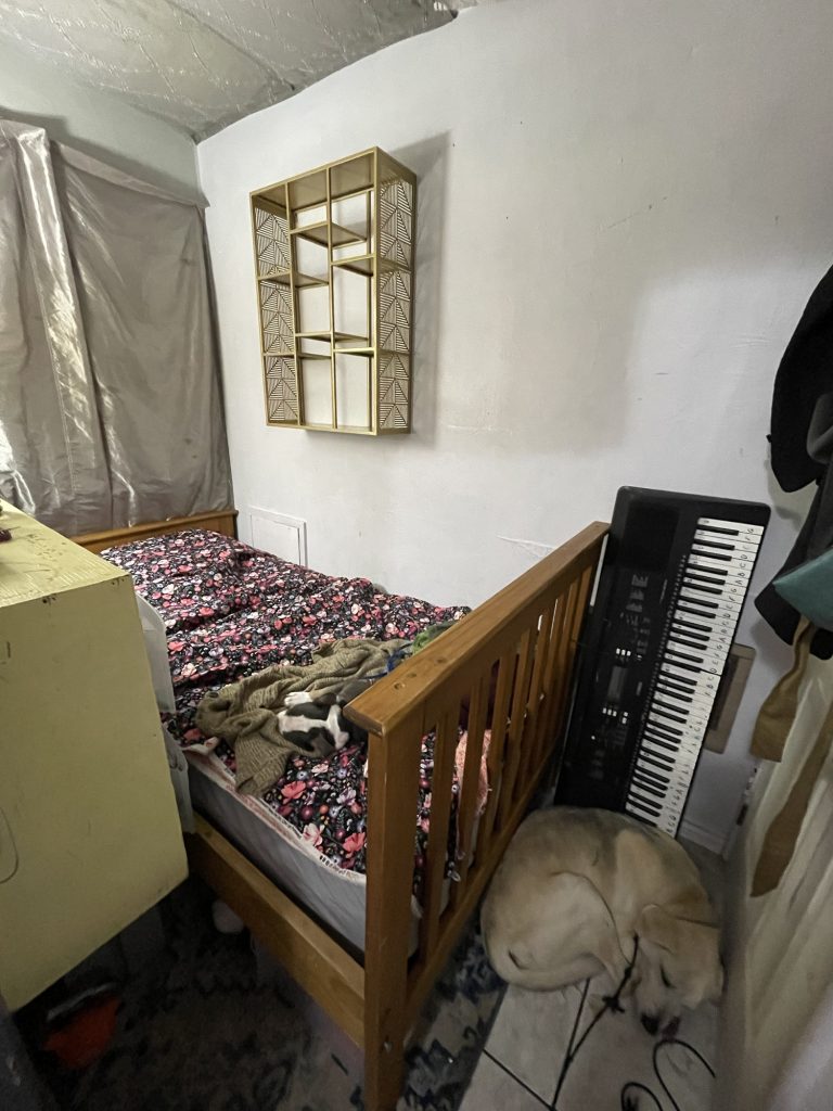 This is where I live. I still have to put in the toilet in the new bathroom after it was not done by the men who were supposed to do that! This is apart of the rest of the house that I rent out to people. The rest of the house has 3 bedrooms and a bathroom. Poppy likes to have his little blankets while he sleeps.