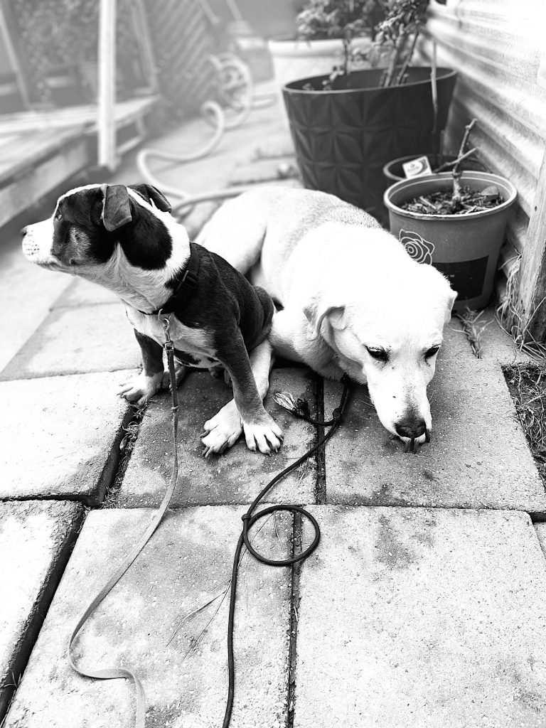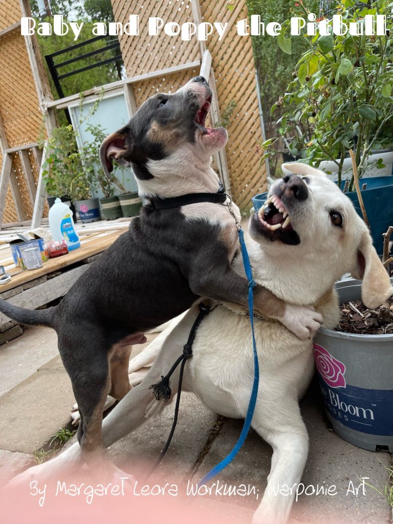 Baby and Poppy the Pitbull by Margaret Leora Workman; Warponie Art