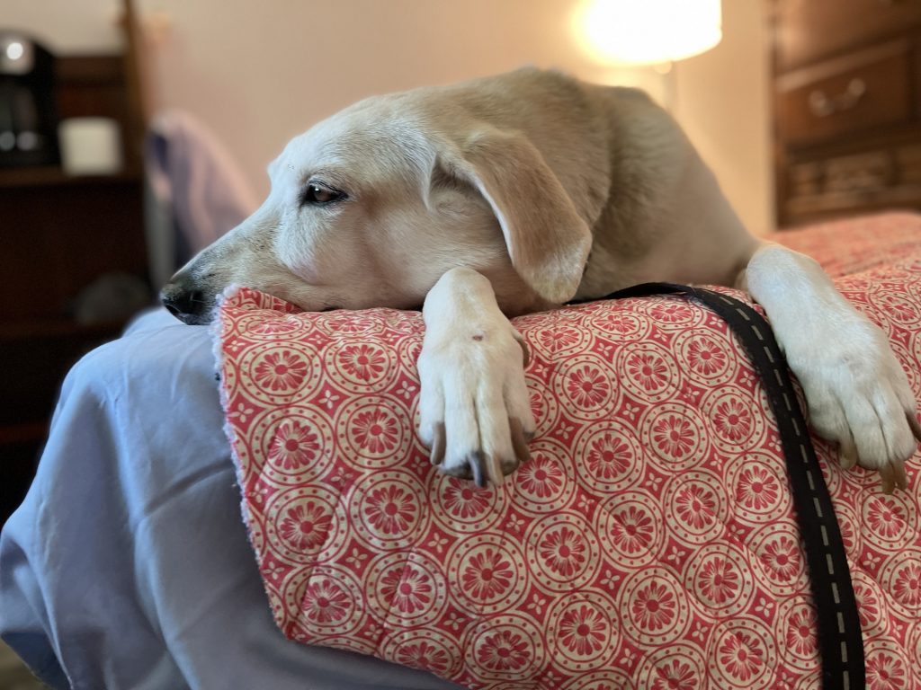 Baby doesn’t normally get on my bed with me but today she wants to be!
