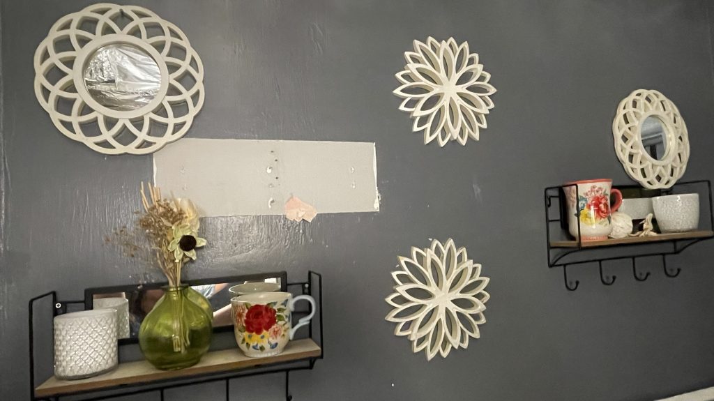 So one of my candles got broken and so I went to see if I could find one like it but they had no candle holders!!! What?!?!? How can this be? So I had to change a few of the decorations. I really never change things unless I am forced to do it because why change it if it is working? Then you have to spend time looking at all of the other choices. That is why I like thrift store shopping. I have always done that when I lived in the large city of Denver Colorado. I am from that area, but I also grew up in a small town of 5,000 people! The same people live there and if someone moves it doesn’t seem right! I always wondered why people would bother moving if they lived in a small town. Because it’s the same everywhere that you go. I actually moved several times while I was there and it all looked the same. Same houses, doors and yards just different configurations. But before you officially move out of a small town or have to it’s best to leave unofficially because then you never have to say that you officially left. So anyway I really liked all of the flowers on these kitchen dishes so I put them in the bathroom! I can always see them then, and I don’t have to bake anything.