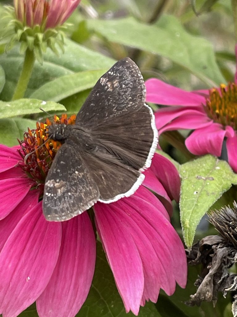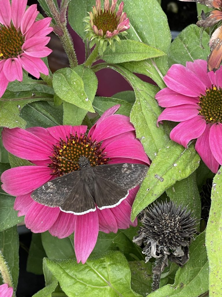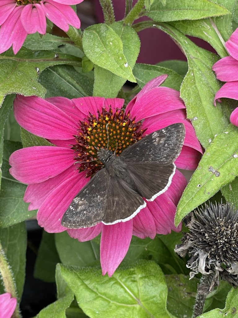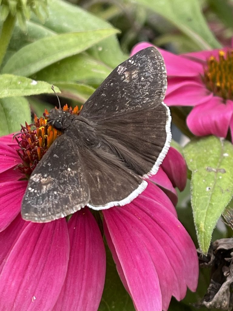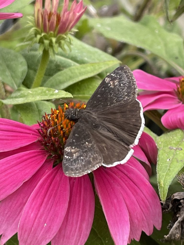 I tried to figure out the name of this butterfly but it is impossible for me to know. I always thought that butterflies land with their wings up and moths land with them down and spread out flat. Today I realized that could be wrong.