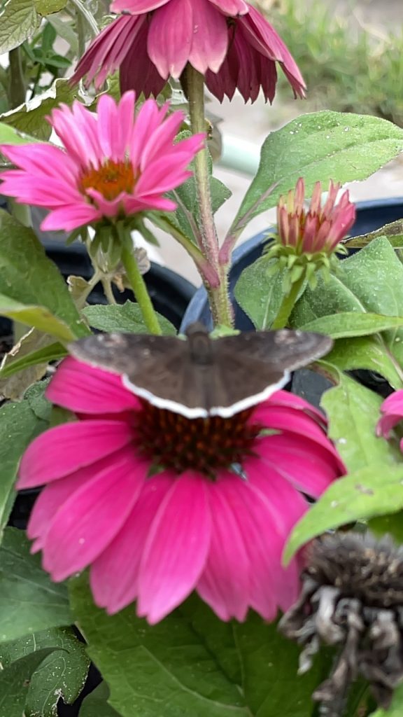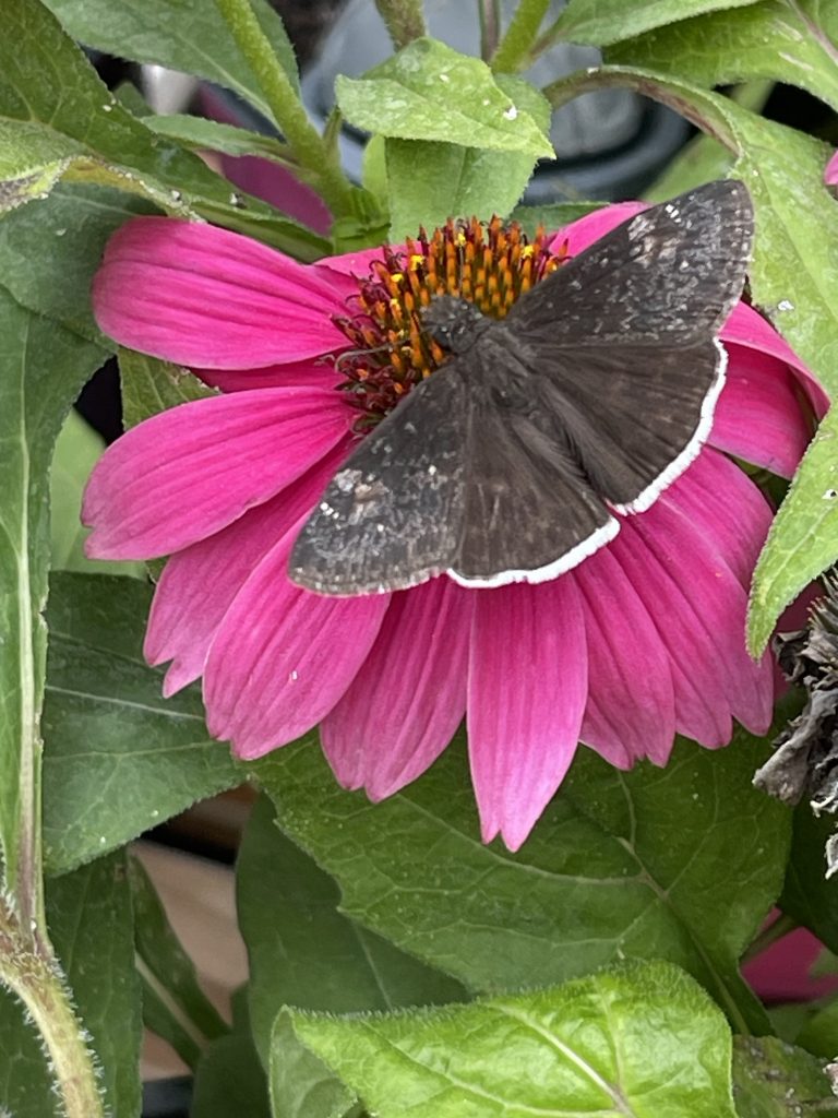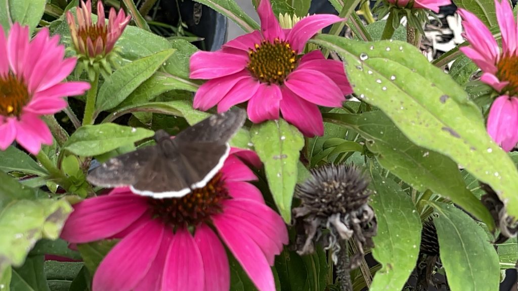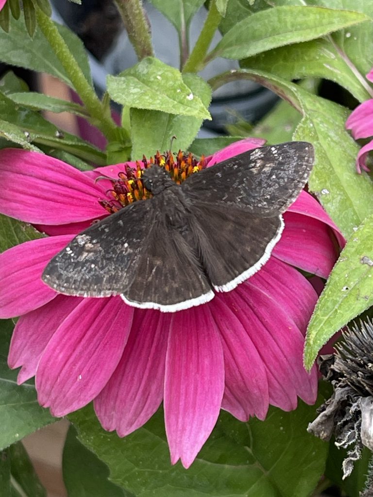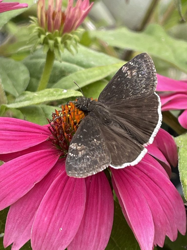 I tried to figure out the name of this butterfly but it is impossible for me to know. I always thought that butterflies land with their wings up and moths land with them down and spread out flat. Today I realized that could be wrong.