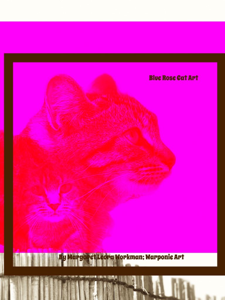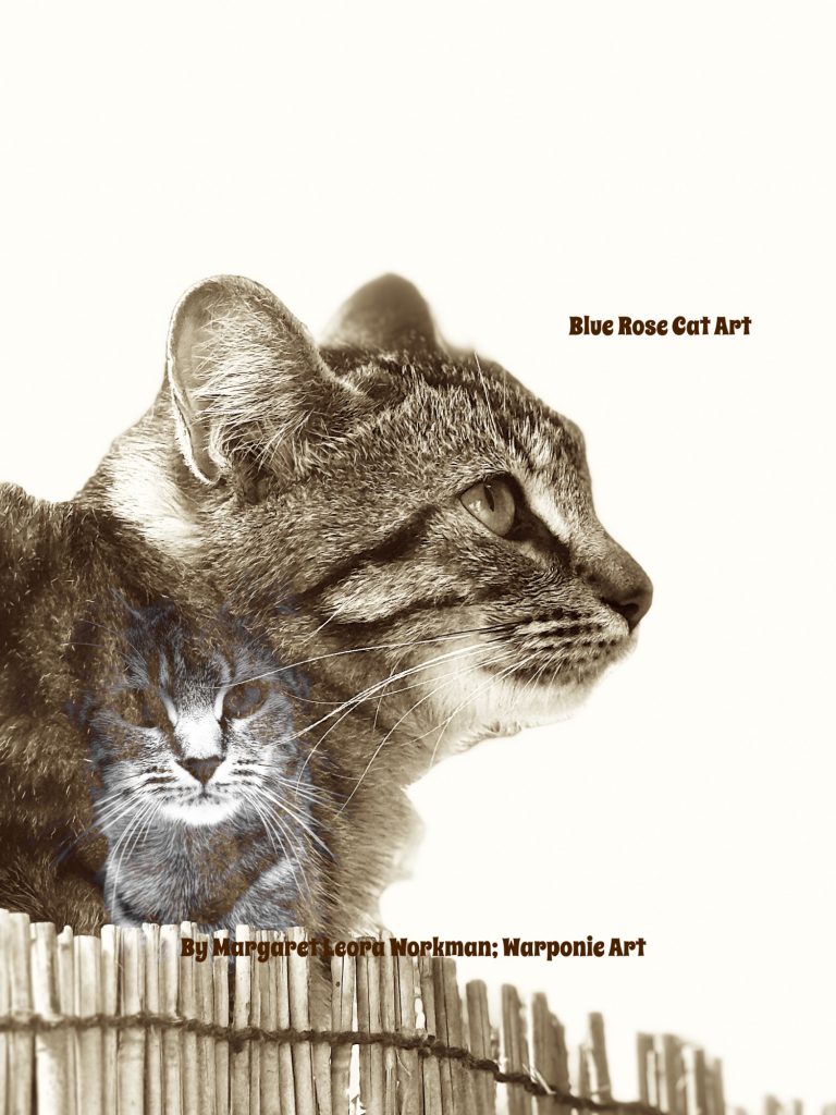 Blue Rose Cat Art by Margaret Leora workman; Warponie Art