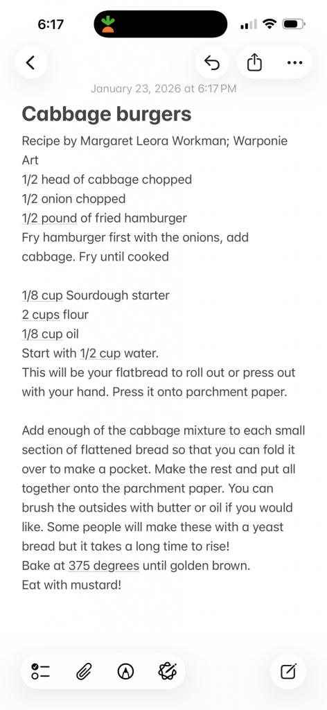 Cabbage burgers recipe by Margaret Leora Workman; Warponie Art