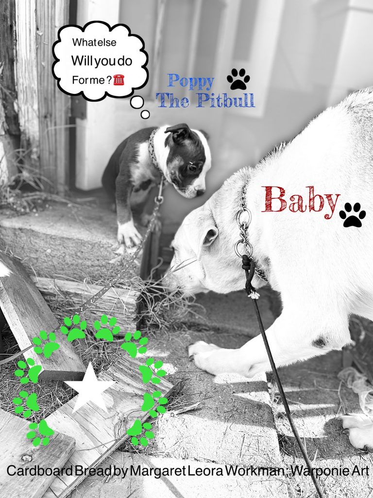 Baby decided to help here eat her cardboard bread. They have become fast friends !