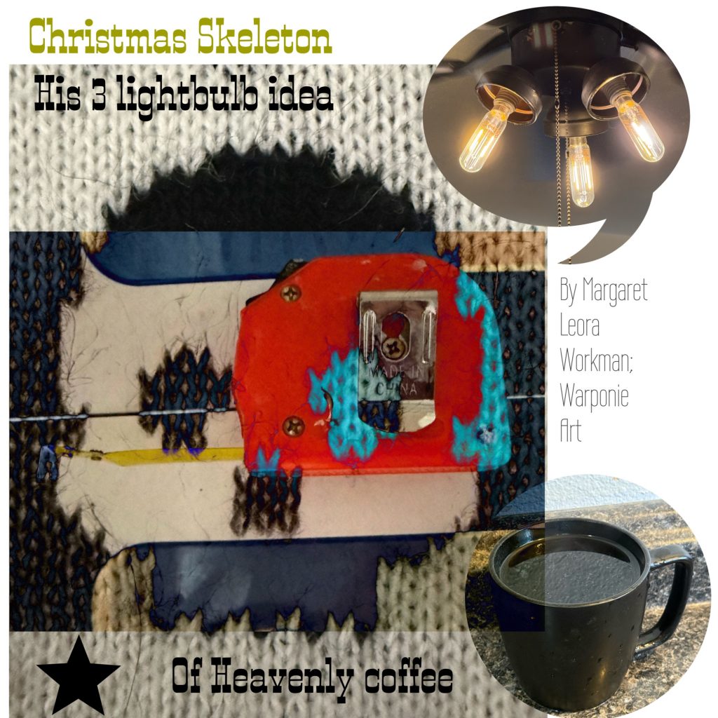 The next day for the Christmas skeleton! What about me! What about us?! He is resting with his heavenly coffee and we are out in the snow! Does that mean I have to wear that ugly Christmas sweater that I borrowed from my aunt? Isn’t she a 4xl???