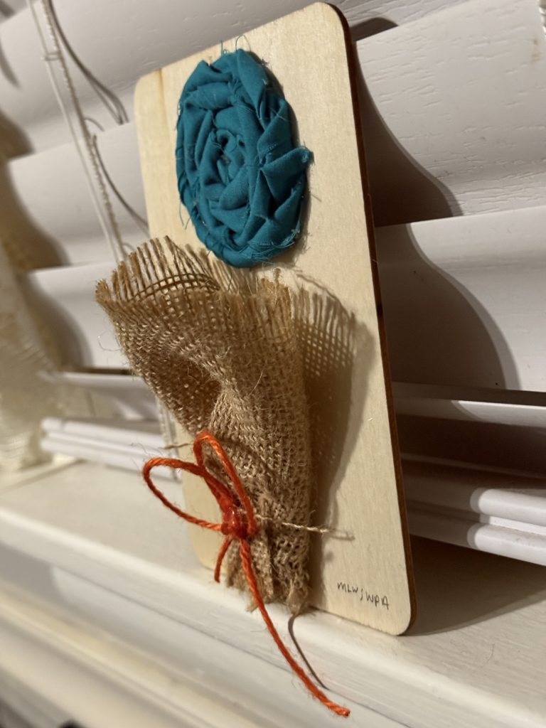 This was fun! I used hot glue to put it all together. Walmart and Amazon have packs of these wooden pieces in all different sizes. Some even have holes drilled at the top.