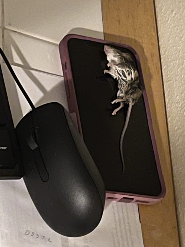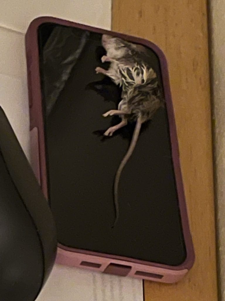 I hesitated to share this picture with you. What is going on with this? I came out of the kitchen one evening to find this situation. My dog must have caught this mouse and then somehow it landed on my phone?? I wonder what was the in between part? Did my dog want me to have a present? Was she mad at me? Or did the mouse escape, then crawled up the wall half dead and land on my phone? Look how wet it is! Gross! My dog must have done that! It is the strangest thing I have ever seen. I threw it outside but I kept my phone and my dog. I had forgotten about this until today when I found the pic. I wanted to share this with you. What do you think?