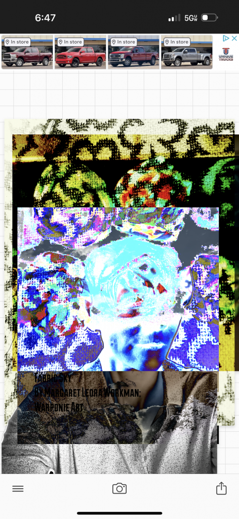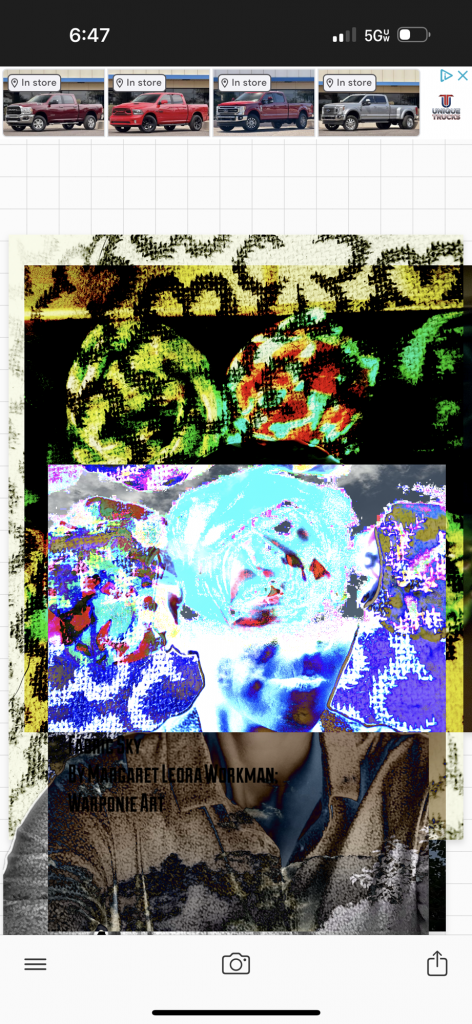 I took this picture of myself and blended it with some fabric roses that I made. I added in a pic of the sky as well. The base picture is a coat that I used to own, I might have sold that in EBay! I decided to close my account on eBay. I was so sad I cried! Even after over a year of trying to sell on eBay they still were trying to verify me and they put a hold on my funds on like a 7.00 shirt that I sold. If you don’t know me by now….i mean….of what use are yuh?? like how many things have I sold?? Quite a few…and they are still cornfused?? Dumb, ok. So I said goodbye to EBay.