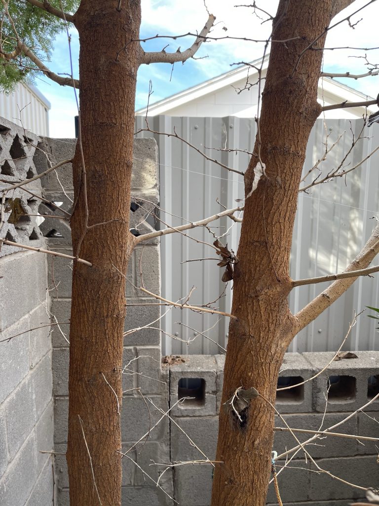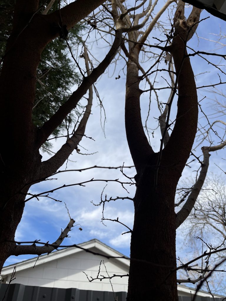 These trees were volunteer trees that sprang up in my side yard one year and this is what they grew into! I don’t know if they will get larger. I might have to water them and maybe that’s why they are staying this size. I need to take to time to find out what type of trees they are. I have many trees like this in my yard, front and back and they are so beautiful! One of them is a mulberry tree that might have sprouted from a bird carrying the seed. There are two mulberry trees at the end of my street by the railroad tracks. one of them is in a neighbor’s yard and a few years ago she let me pick some of them and I made some mulberry jam. It was edible at least. I wouldn’t order it at a restaurant but we all ate it because I gave some to my other neighbor and they didn’t say they hated it to my face.