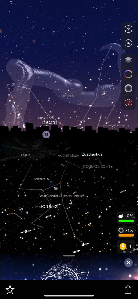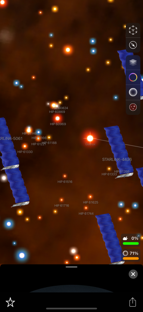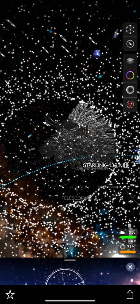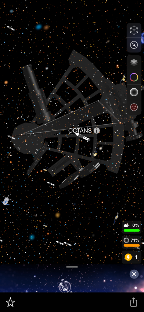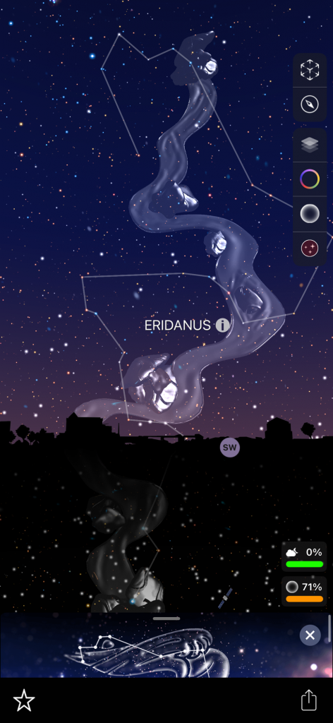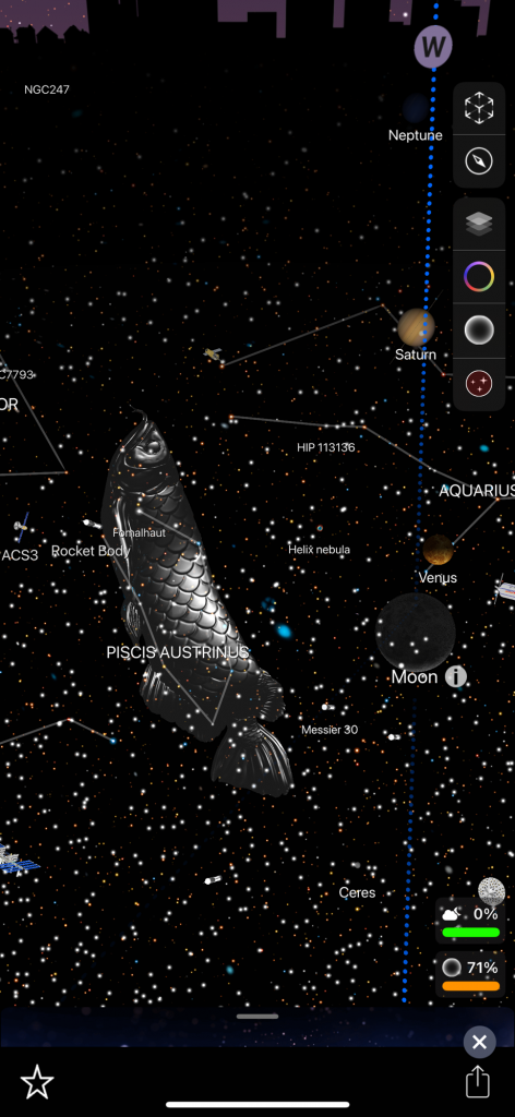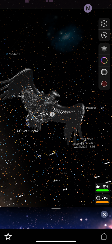 I want to tell you about these apps because I forget about them sometimes! I have used them a couple of times in the past couple of days. I saw what looked like a star but it was reddish so I pointed my phone at that when I was in the app and it told me that it is the planet Mars. When you are in the app it shows constellations. I have found two new constellations that I did not know about! I don’t know a ton about all of these things but I have heard of many of the popular constellations. There are billions of stars and you can click on many of these things in the app and it will tell you what it is and the information about it! It shows satellites that you can click on and learn about, there are many satellites floating around up there. Planets etc… and I found a white rocket that seemed to be randomly floating around. It was labeled ‘rocket’, that’s how I knew. I am wondering why there is a rocket flying around! How big is it? I tried clicking on that but it had nothing about it. Also you don’t have to be outside to use the app you can stay inside and it will show everything as if you were outside! Truly amazing! I have never heard of this constellation called ‘Octans’. There is another one that I forgot the name of but it looks like a ‘pump’ in the sky.