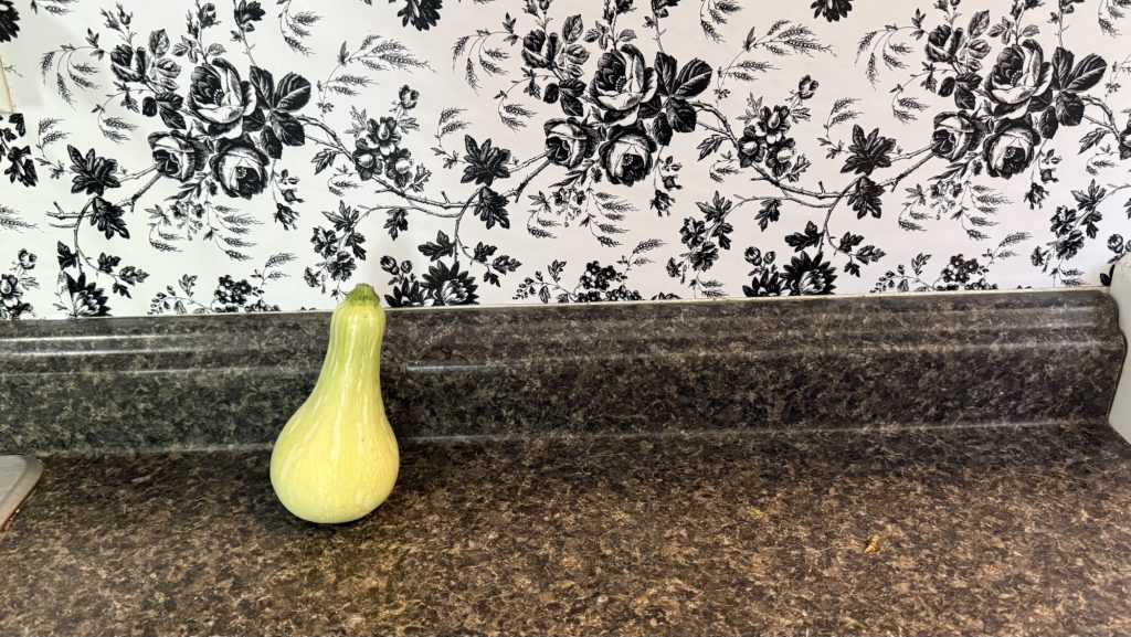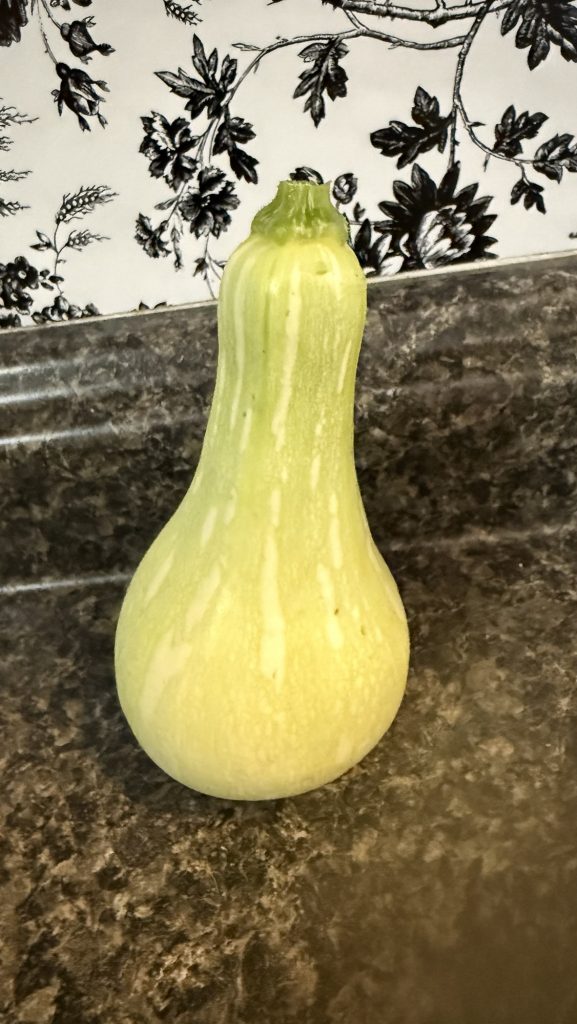 This is the first fruit that I have seen in my garden! It looks like a squash, right?? It’s long and probably something that I would never buy at the store. But it does look so pretty! I guess I will be eating it, it’s the only one?? I did the plant finder on my phone and it said that it was either a cucumber or squash. I did plant cucumbers over there, I wonder if it’s seeing both vines? So I will keep you posted. I knowwww that some of you know what it is already! But it’s still a mystery to me. I do know that it isn’t an ornamental squash! I bought a bin of seeds off of eBay one time and I received those in that. It said on the package that you could make a bowl out of those. Very interesting! Nope, will not do that. What would you use that for??