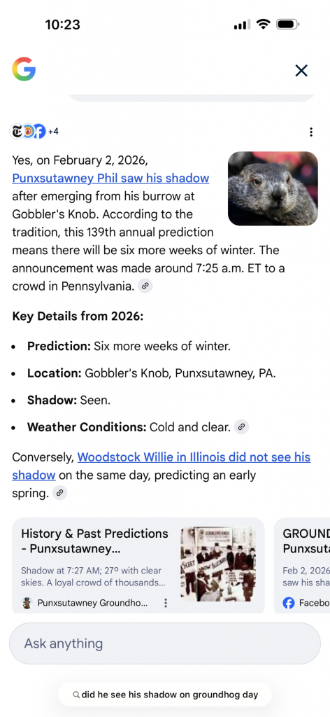 Does anyone still talk about how the groundhog might or might not see his shadow on Groundhog Day??? I remember talking about that growing up. Yes Groundhog Day was on the 2nd of February and here is what happened!