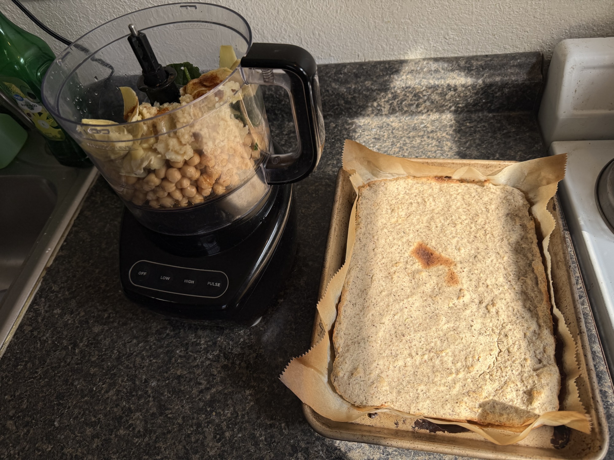 for hummus the main things are the chick peas and the oil and maybe some salt. you do not have to have any of the rest of these spices. Hummus is nice to put into a tupperware and bring with you during the day. you can use crackers or chips or pita bread from the store, or just eating it plain is fine too.