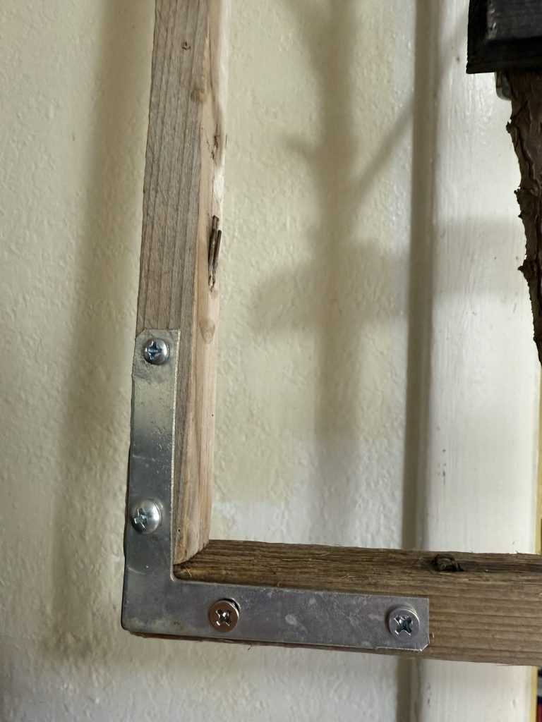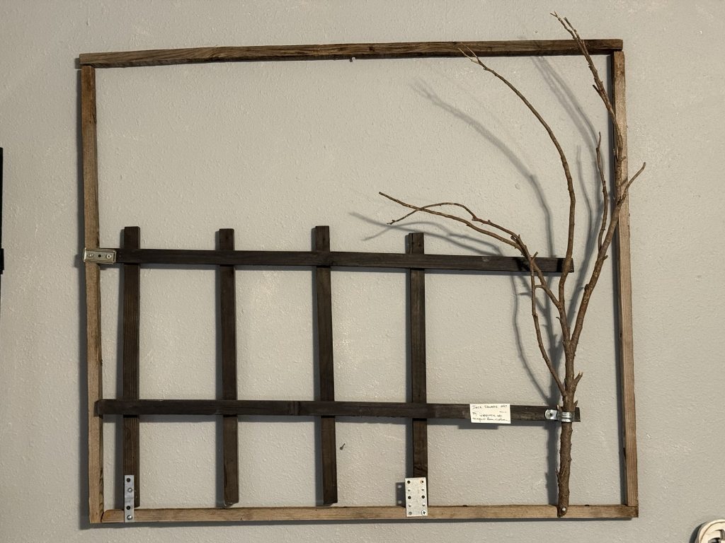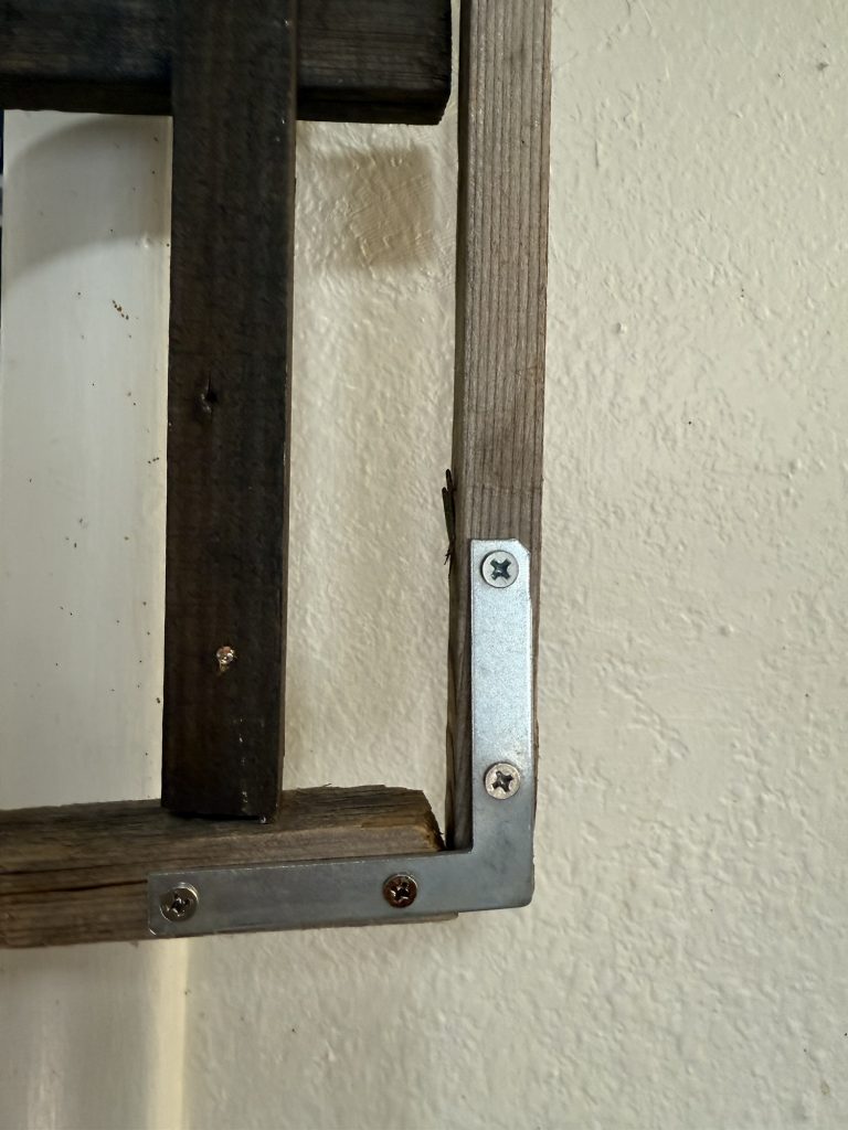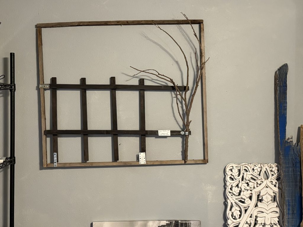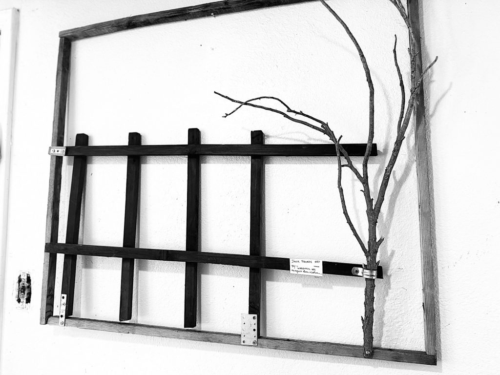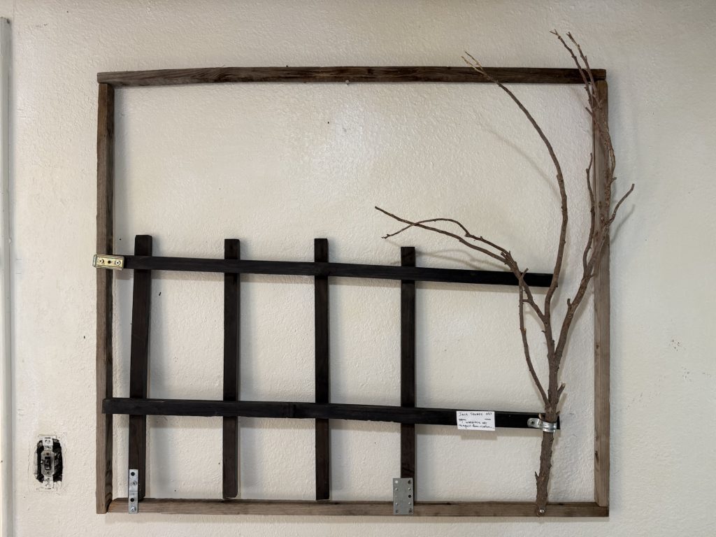 For this fictional character I created this art out of an old lattice that got destroyed in my yard by vandalism. I kept all of these lattices. I took braces and connected them with those at each corner after I drilled the pilot holes. Then for the fence I took more lattice that I had painted black and attached them to the frame with other metal parts that I have kept from random things. I took a tree limb from a small tree that I had cut down in my yard and attached that as well. I used a hammer and hammered down the large staple ends. It’s actually very sturdy. It is 31.75 x 36 inches. This was extremely easy. If you want it to be smaller then a jig saw can be used.