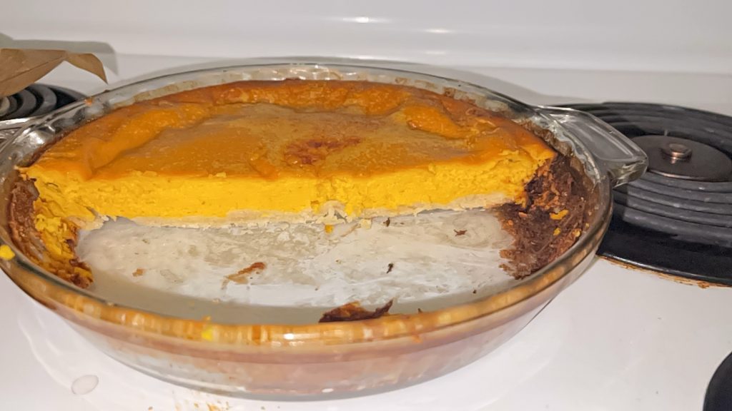 I was intending on following a certain recipe but then some of my eggs were frozen and I didn’t have one of the other ingredients. It turned out just like I wanted it to be! I like pumpkin pie but only if it has whipping cream because it is such a heavy dessert.