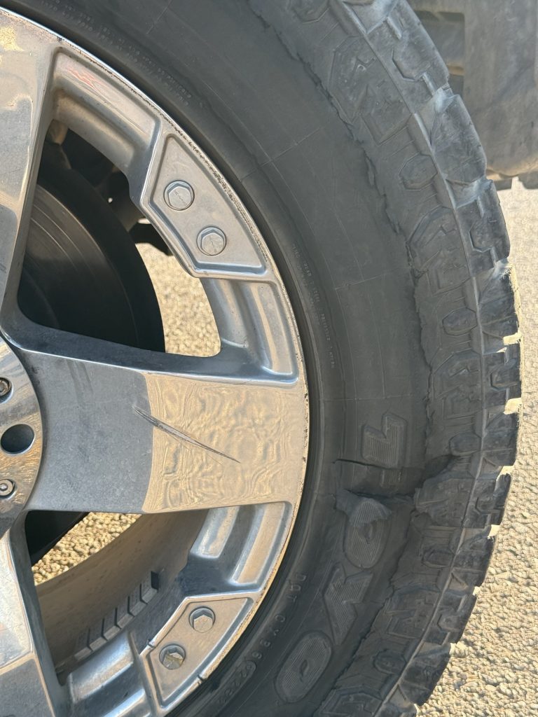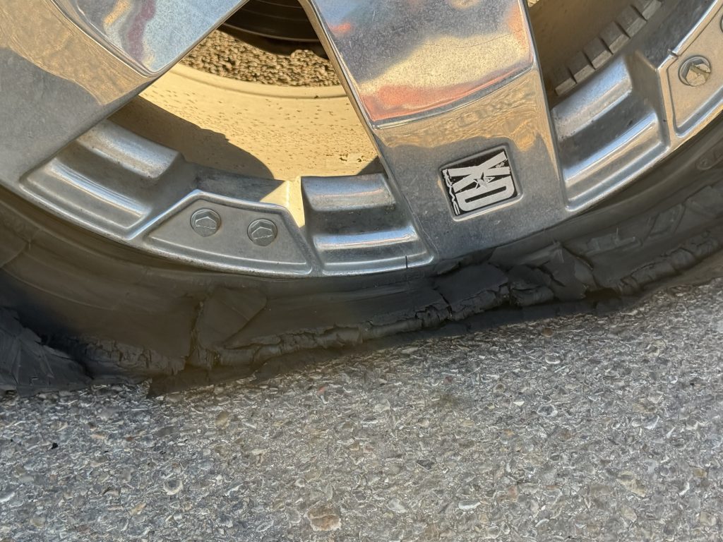My tire was fine when I left home. Is it my imagination? Or does this tire look like it’s been cut?? Maybe the cut the outside rubber and then the inside would break later…it looks this way.