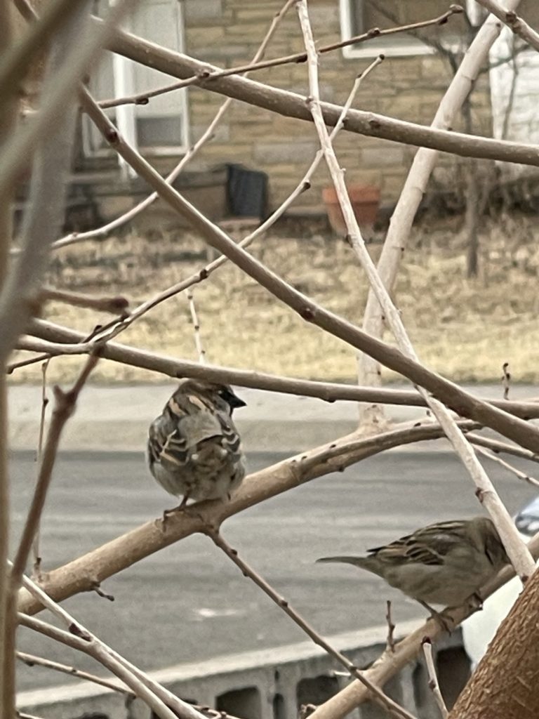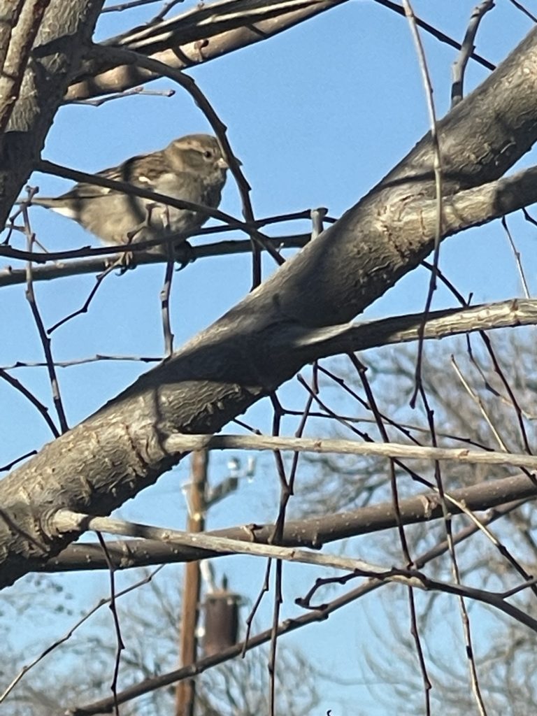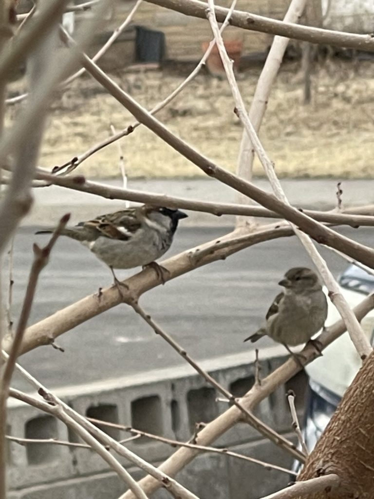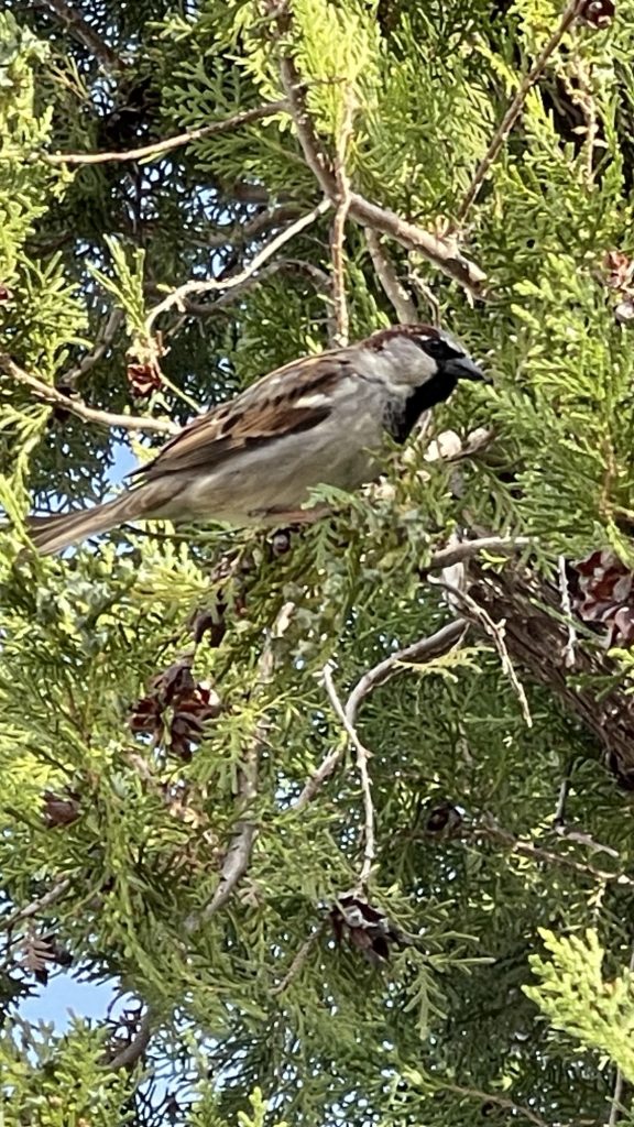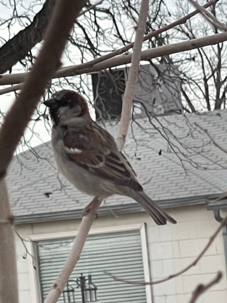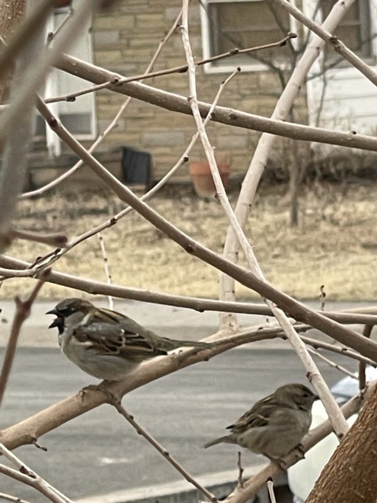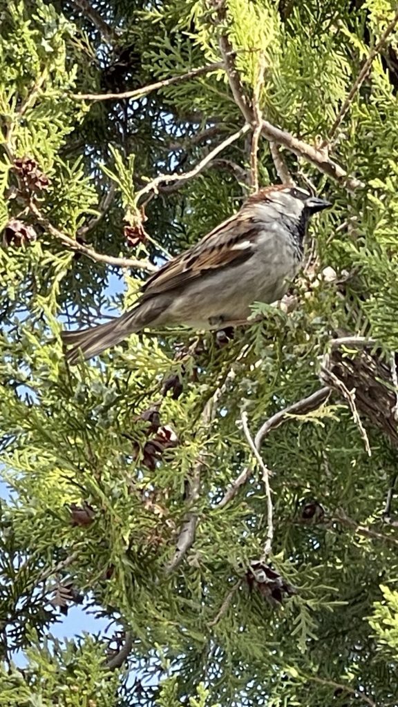 I really like birds! But I never really took the time to look them up to see what kind of birds they are. Above, This is a male sparrow with the black bib and black mask. A female sparrow is just light brown all over with no black markings.