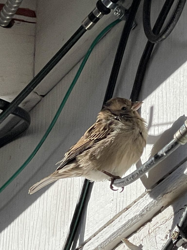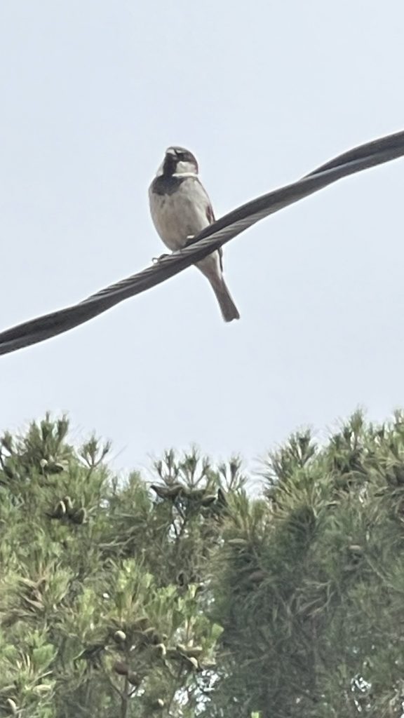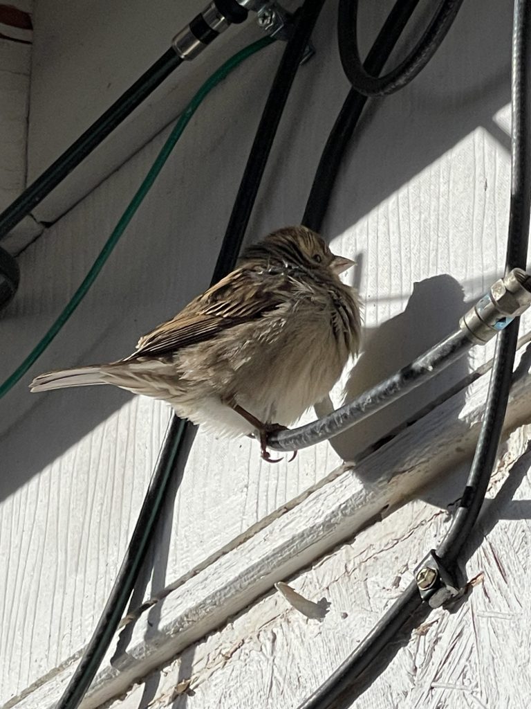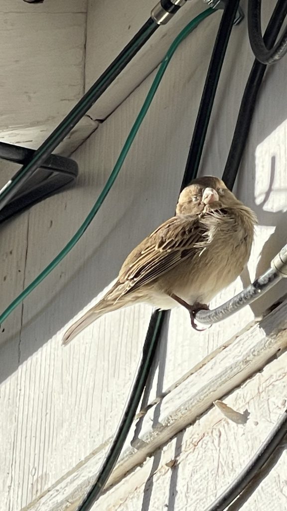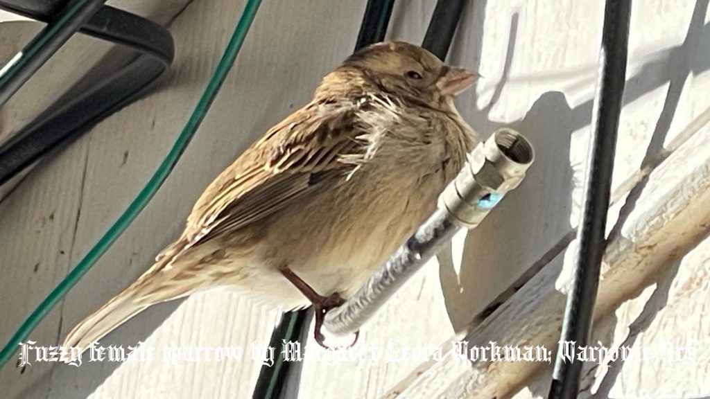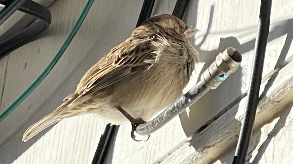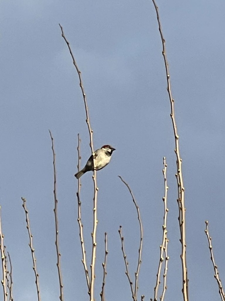 I really like birds! But I never really took the time to look them up to see what kind of birds they are. Above, This is a male sparrow with the black bib and black mask. A female sparrow is just light brown all over with no black markings.