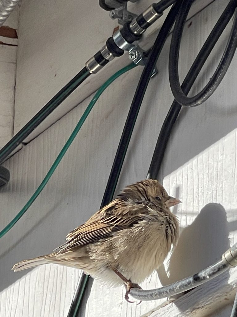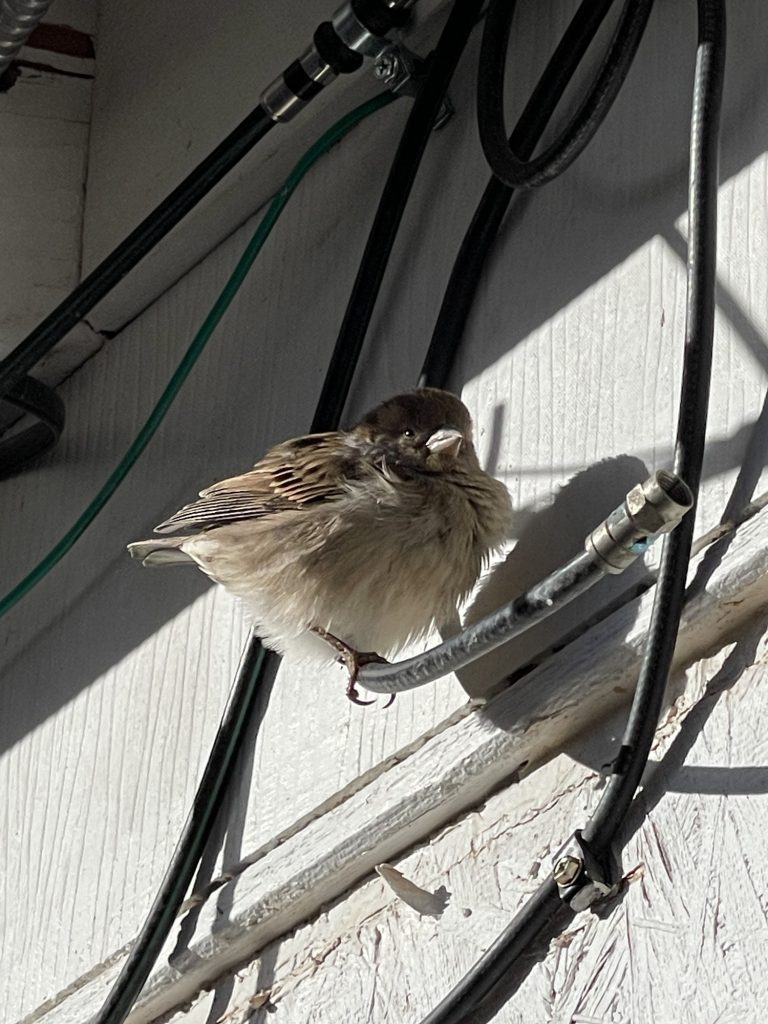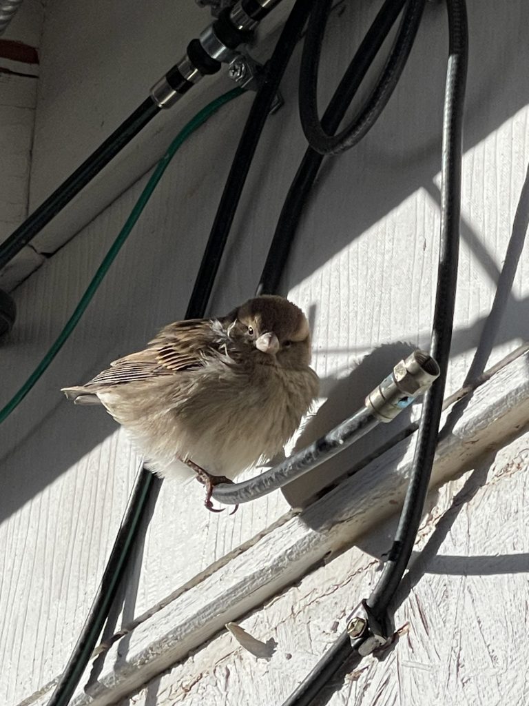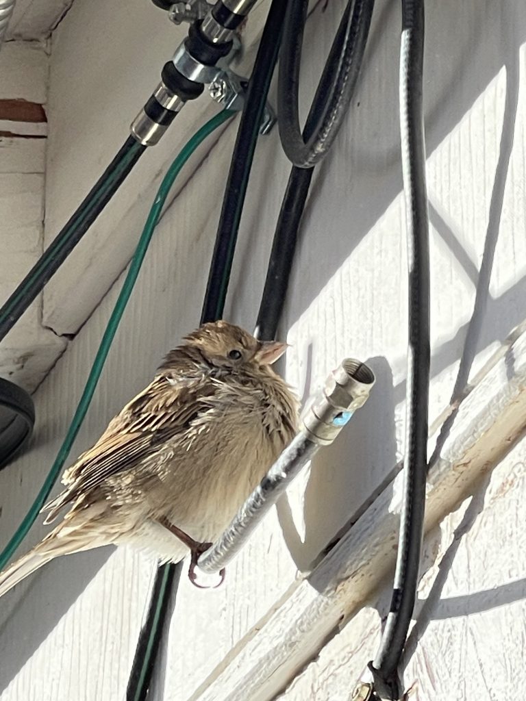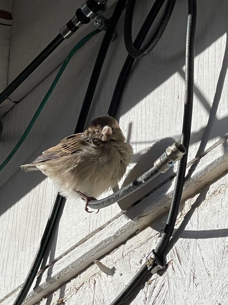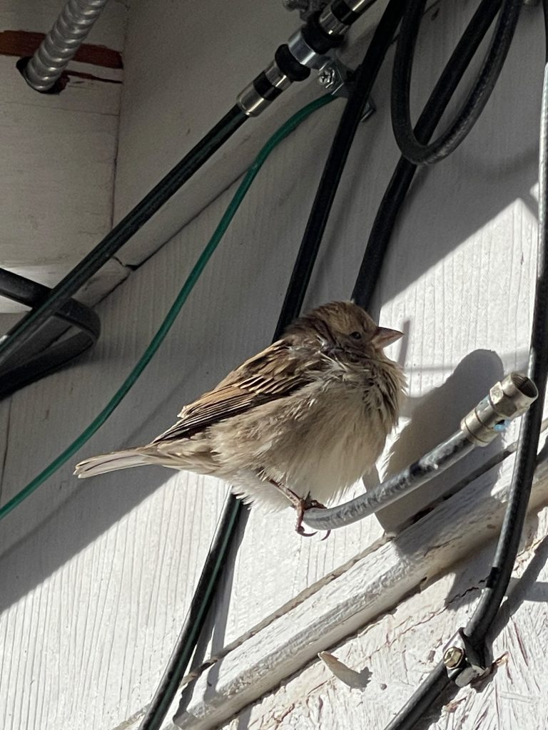 I really like birds! But I never really took the time to look them up to see what kind of birds they are. Above, This is a male sparrow with the black bib and black mask. A female sparrow is just light brown all over with no black markings.