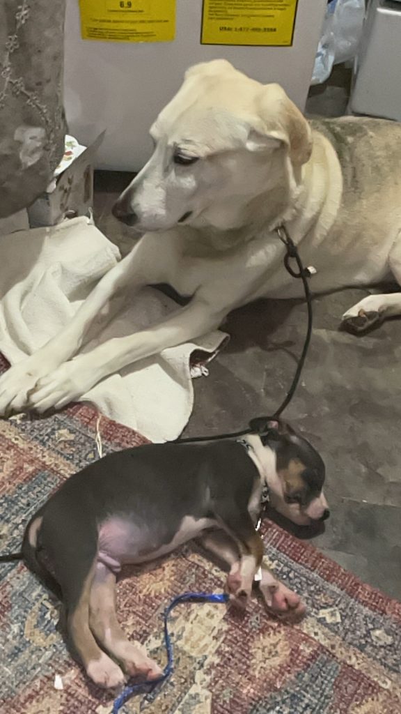 He has gained some weight! I am so happy and relieved. Tomorrow he has his appointment at the veterinarian which is 1 block away. Thank goodness for Baby so that Poppy can see what it means to sit, lay down, go potty (outside) and come. Since he is only 7 weeks old, I read that he is still getting his vision in fully. I hope that’s why he doesn’t like to come in when asked! He is halfway potty trained during the day. At night he can’t hold it the whole night yet. He has learned ‘no bite’ already very well. I have had a few dogs and have been a pet sitter in Colorado for Rover.com and usually dogs don’t learn as quickly as Poppy has! Usually they are more resistant to doing anything you would want them to do.