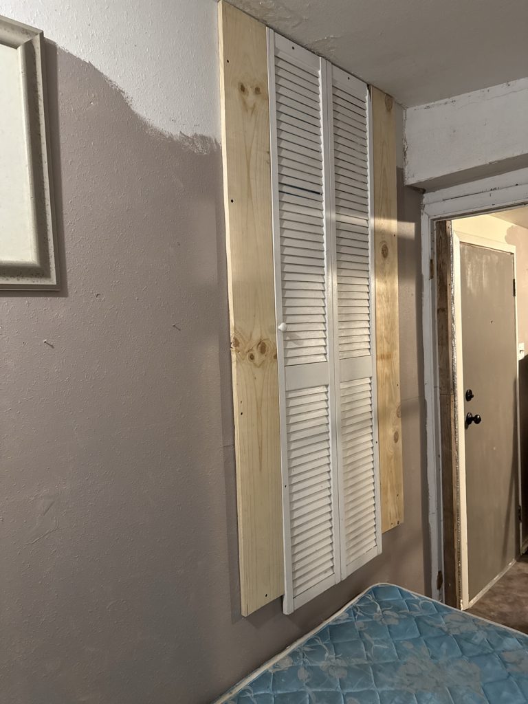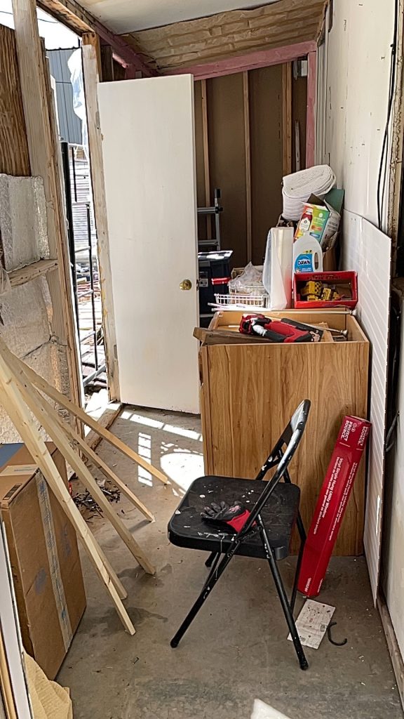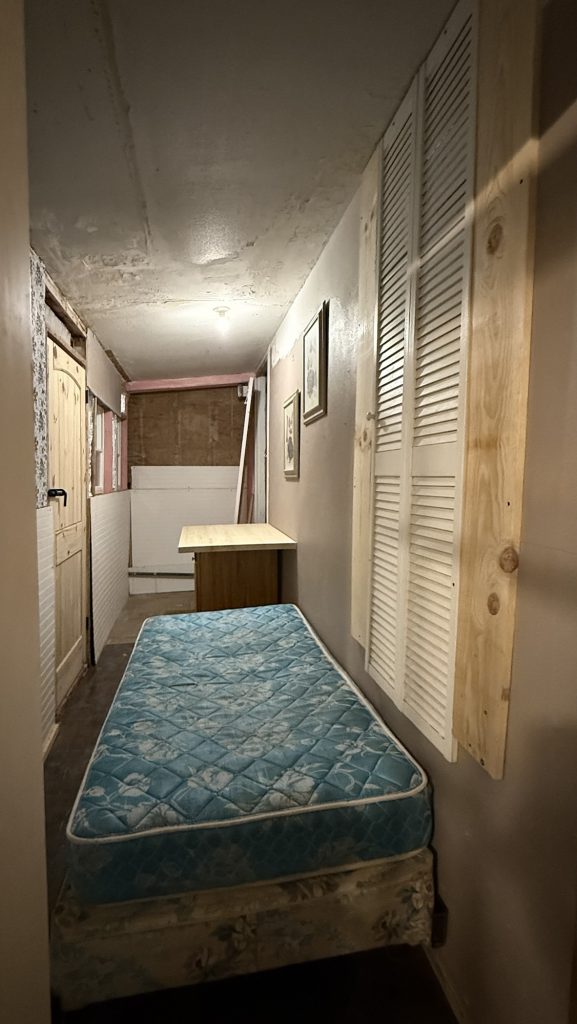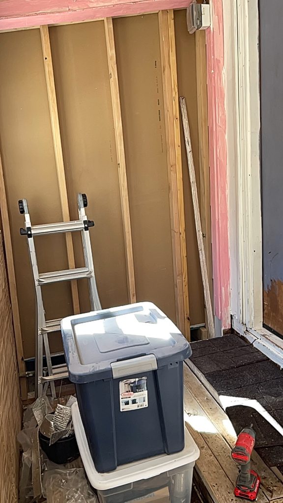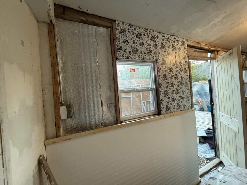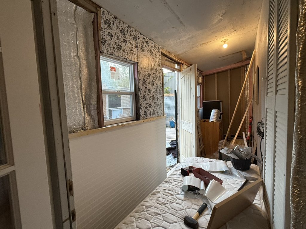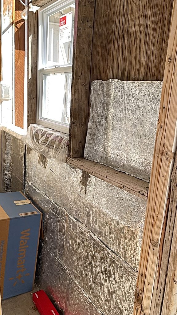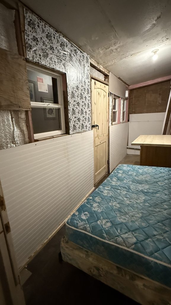 I did get some of it done! It’s taken a long time because I really got tired of doing it and so I stopped. I still have to put some sort of ceiling tiles up, weatherstripping, the rest of the upper plywood around the windows and then trim for the bottom and the middle. And then the rest of the linoleum. I can’t believe I did that whole wall! I would like to rent it but I have to install the DIY mini split.