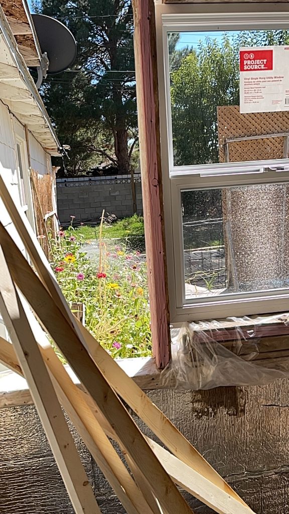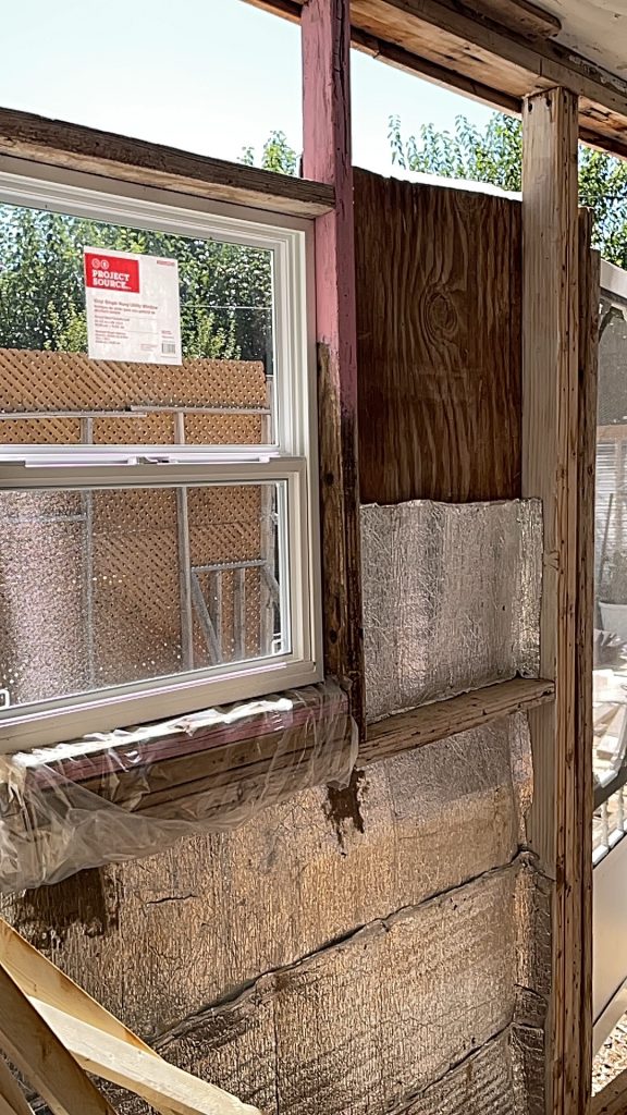 I finally got the last window in only to realize that I had screwed in the horizontal board too low! So I had to build it up with other 2×4’s to make it sort of the same height with the other two in the middle.