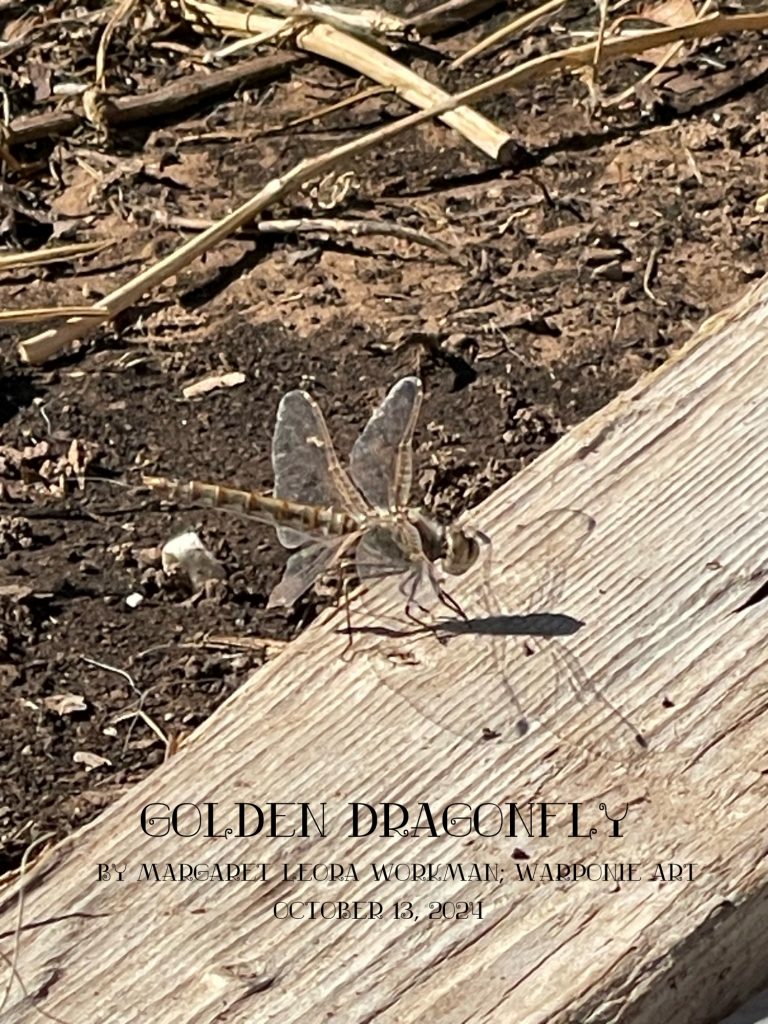 This is the golden dragonfly that I talked about in one of my ‘sightings’ posts! It’s reals! My dog Poppy wanted to play jump, jump, jump around! when I was taking a video! I wish it wasn’t on the dirt so that you could see how spectacularly beautiful it really was.