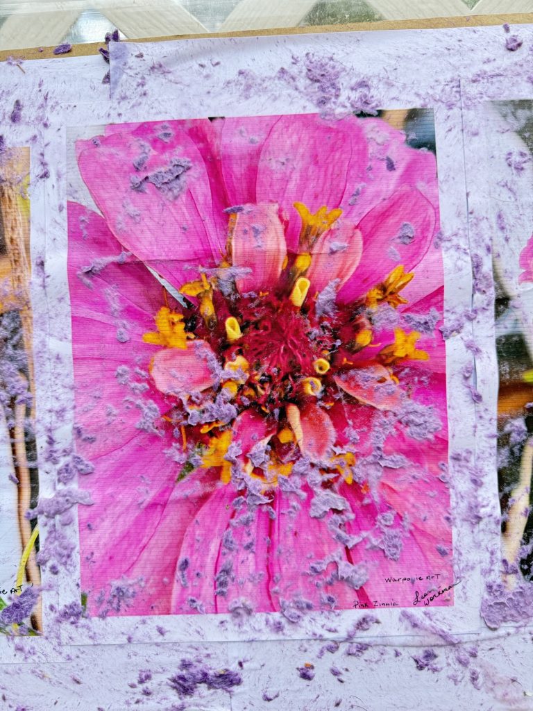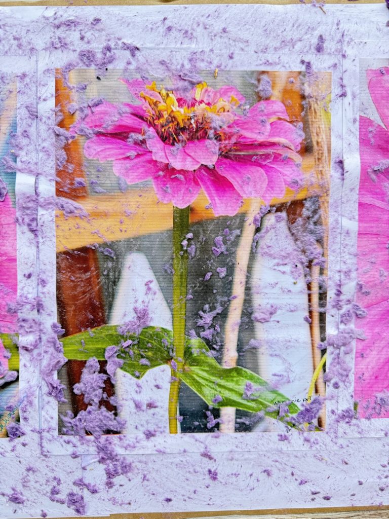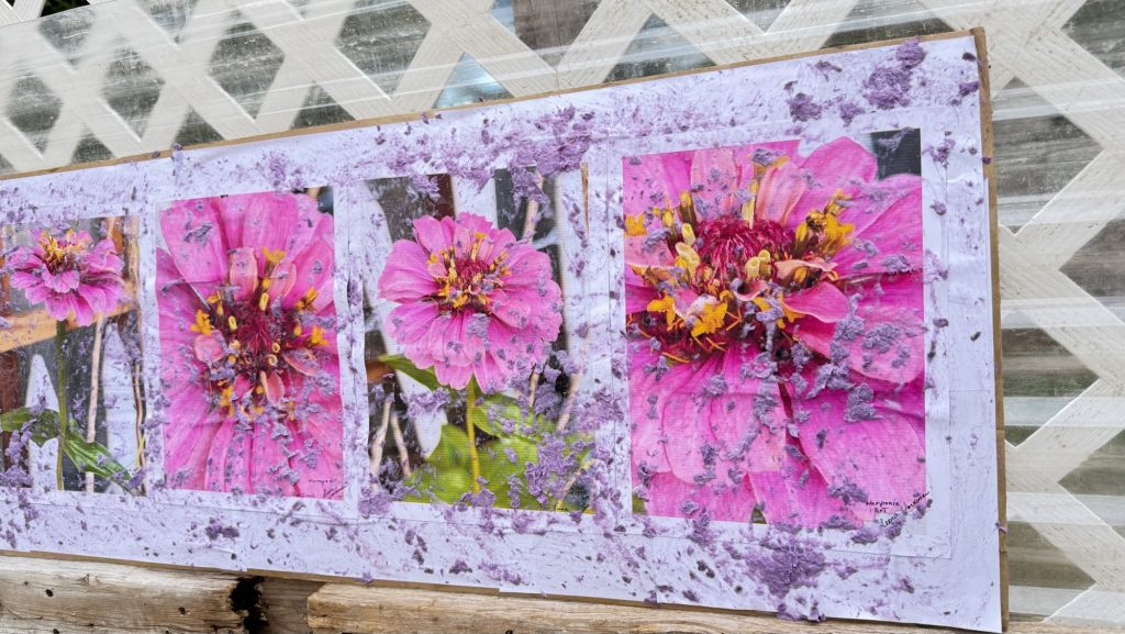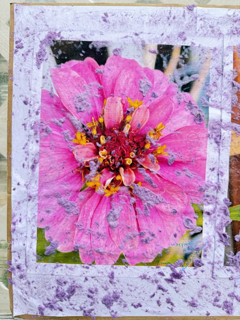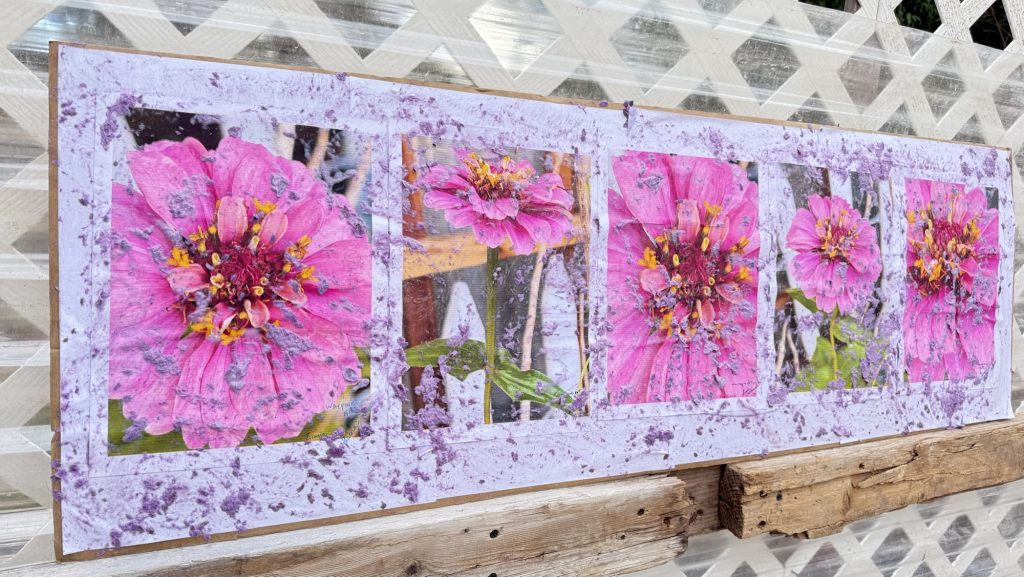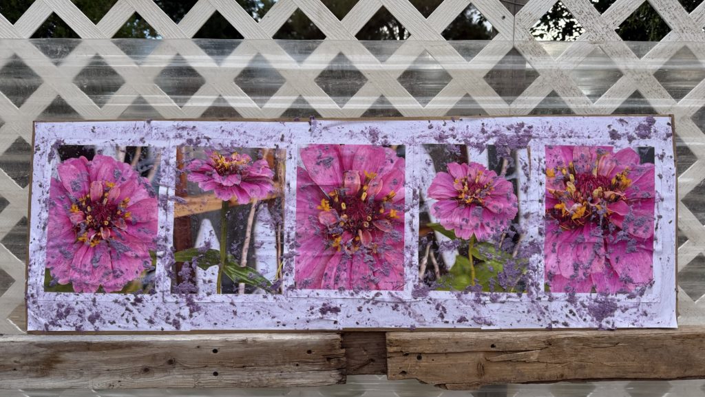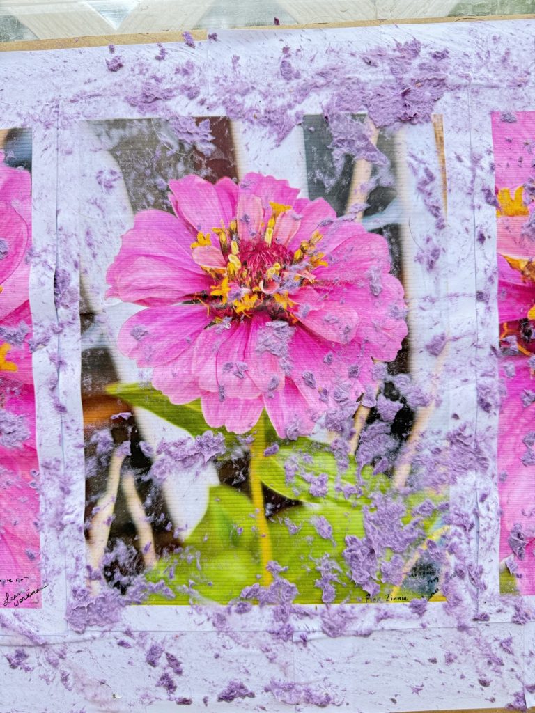 These are some photographs that I took and then printed on glossy photo paper of zinnias. I used this cardboard that came in the box with the mini-split that was installed in my house. I have been thinking about decoupaging these pictures onto cardboard for a couple of months. I used: