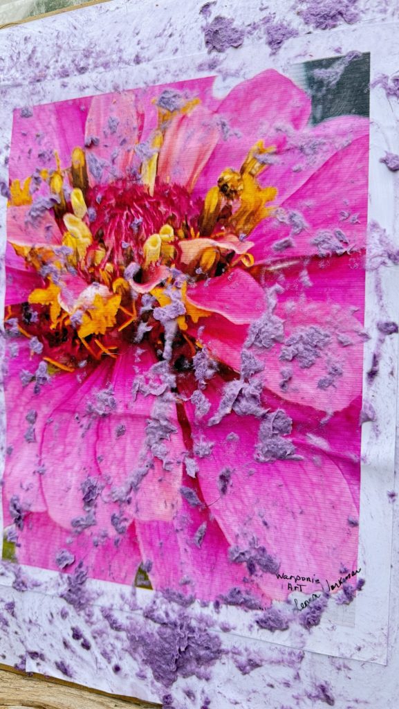 I used this also on this small MDF board that I painted for future flowers and these are the centers
