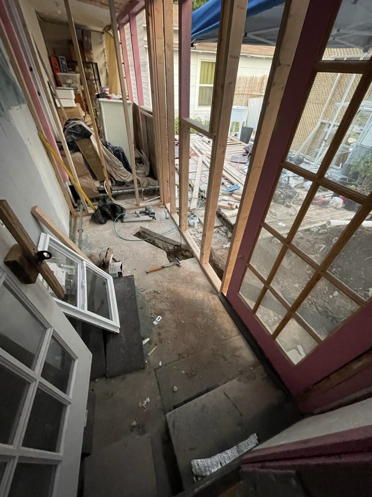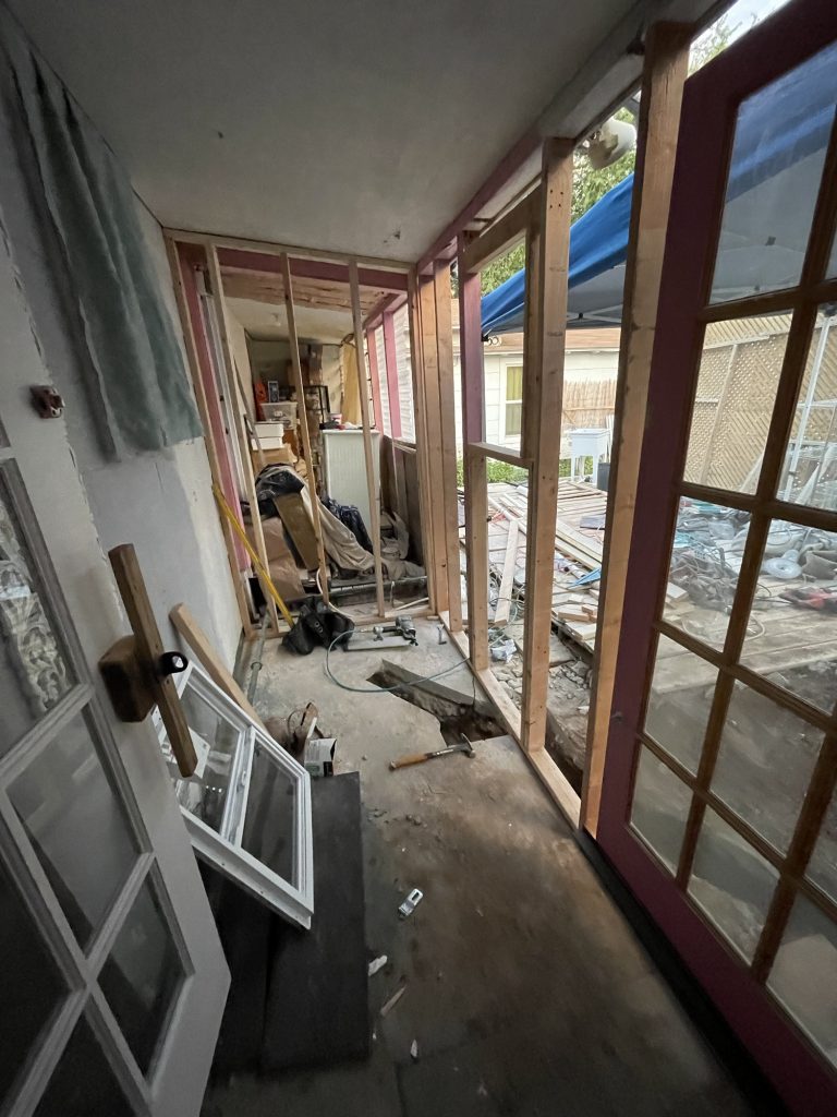 My Pink posts are missing. He said that they put them in the trash and then he said that he mis-spoke. They were perfectly good posts that I had installed and they tipped them out. Now they are missing. I told him that they had to replace them with other 2×4’s if they continue to be missing but he wasn’t pleased. I told him that he did not have permission to take “trash” out of my yard. Then yesterday he said that he wanted to install the bathroom pipes below the ceiling and through the wall in either side. I said NOPE. So these people are supposed to be professionals….how many tears have I cried already???