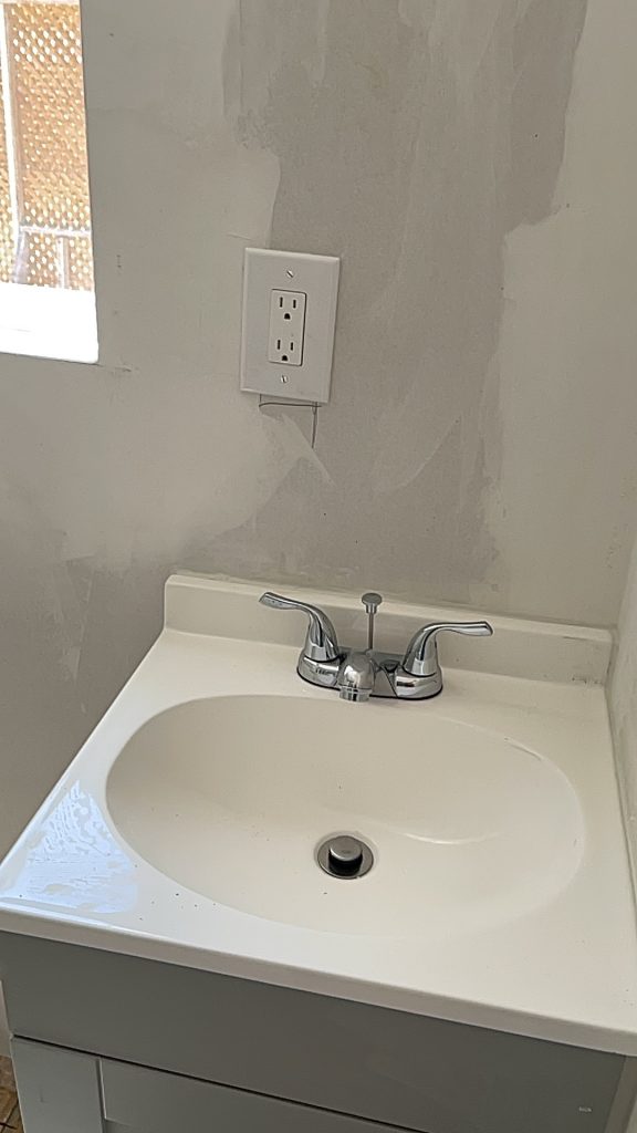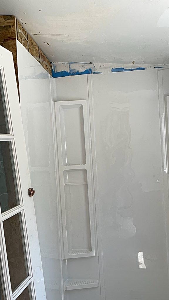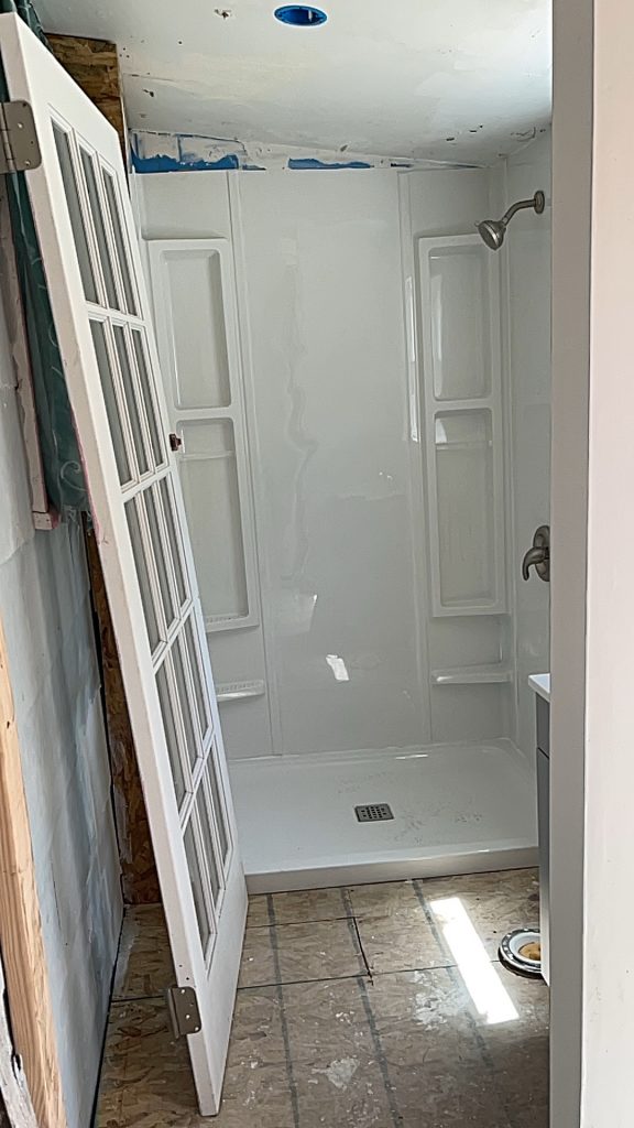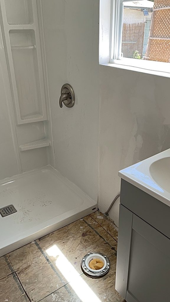 So this is what it is…and I have a lot of words about it but I guess he is done. So I will have to buy the toilet, YouTube it, and install it. I have installed a couple of toilets before but they were over tile and not just the osb boards! I have some extra tile laying around from something else so maybe I can do it DIY?? I told him that when he shows up with the toilet and installs it then I will pay him the other 3700$. I already paid $3000 cash to him for this. He didn’t want to buy the toilet but I bought the sink and a whole bunch of other things that weren’t even apart of the contract!! And I guess a floor wasn’t in the contract…bummer. Did you see the outside wall?? They totally destroyed that wall and then put it back up in pieces😢 they do NOT know how to install the corrugated metal siding. They totally installed it crookedly and not how I had it before and they drilled the screws into deep so now it’s totally bent where the screws are. They are the most hideous people. I hope I never see them again.