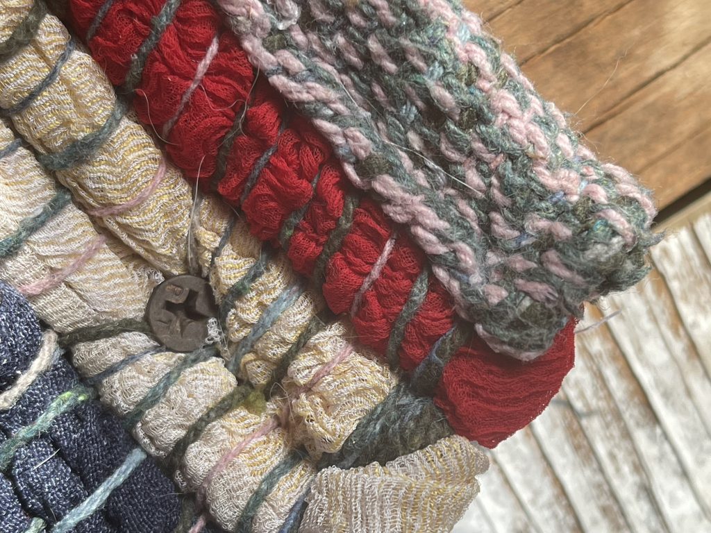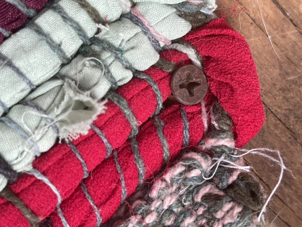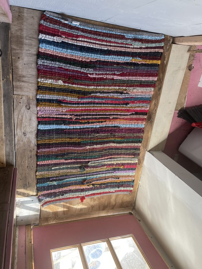This rug! Kept bunching up and wouldn’t lie flat, so I made it do as I say. I screwed to the floor. When I want to wash it, I just have to remove the screws!