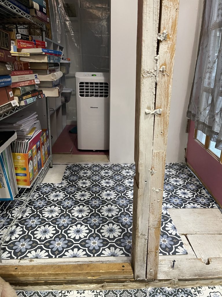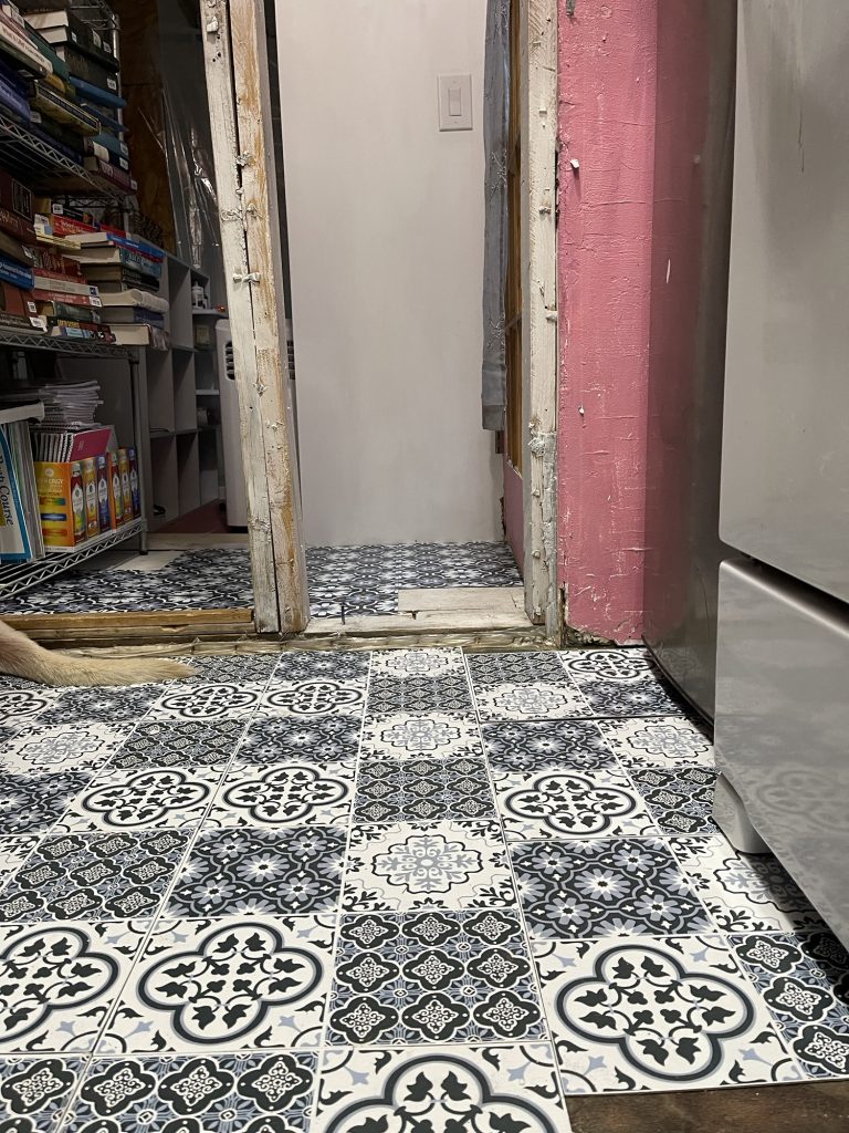 Update* these self adhesive linoleum tiles have ruined my life! Only parts stick down. You have to use glue. I do not like the horrible glue because it makes me so lightheaded. I took some of them back up and used Elmer’s glue and that helped but some of them slid. I used water and primer on some of it but that did not work that well. So now I am gluing them with Elmer’s glue and staggering them on top of the old ones to cover the seams. It’s working way better but you have to use a lot of glue and have something heavy to put on top, Continually moving it around to get all of the edges to stick. I tried to find some different peel and stick at the hardware store but it was all expensive so I found some on sale at Walmart but they only had two boxes left. It’s black and white and I normally don’t choose that for a floor but it was all they had at Walmart. He said that the idea of peel and stick linoleum wasn’t really popular so they may not get any more. Hmmmm….really??