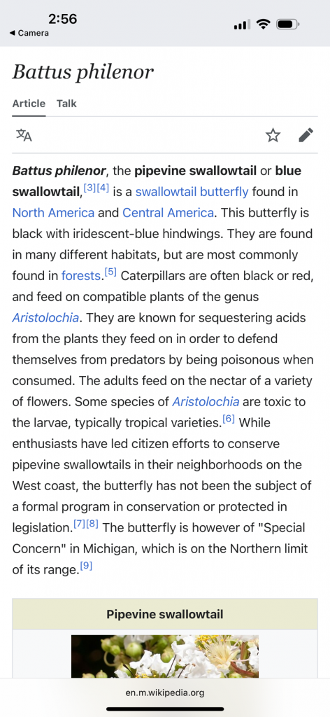 This butterfly was so big and beautiful! I had never seen one of these butterflies.