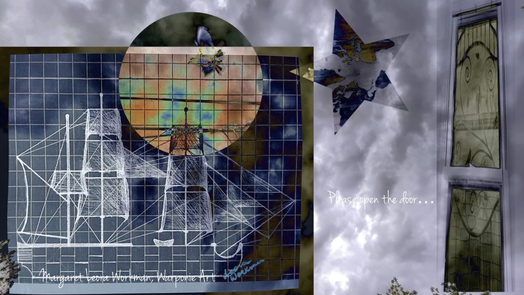 For this you can use random pictures and put them together, fun. I took a picture of some clouds that I took and used it for the background. If you want to label the picture you should do that now because you can’t add text to the added pictures. If you want the added picture to have a label then add text on the first picture then slide it onto the added picture. Then click on the bottom left icon, add image and pick a different picture, I had drawn this ship so I added that one. I found one of my pictures of a dove flying and then chose a circle at the bottom, it will put that image into a circle. Then I added a picture of this picture that I bought from Ross of this map. I had taken a picture of one of the rooms that I rent out and this picture is in there. I zoomed in on the picture and then took a screen shot. Then I added that into the clouds as well but I chose a star and so the map is now a star in the picture. Then I added a picture of a window that is in my bedroom and shortened the width and then also stretched the height of it when I resized it so now it looks like a door. for each one I clicked on them then chose ‘blend’. Choose one of those choices and here it is.
