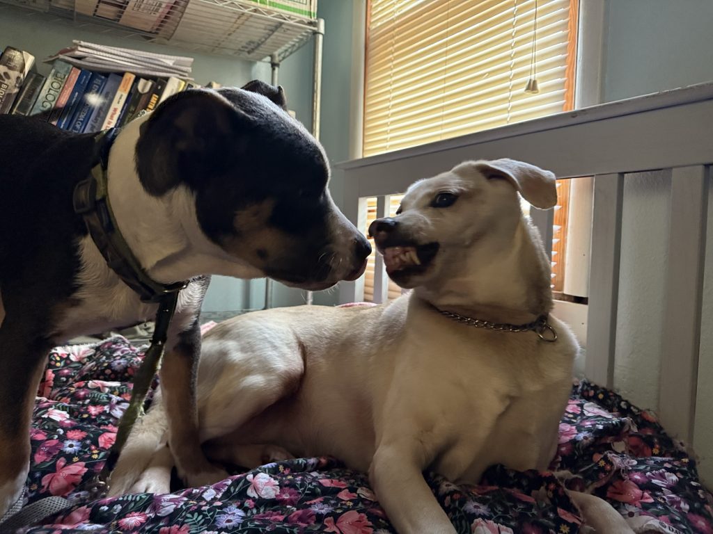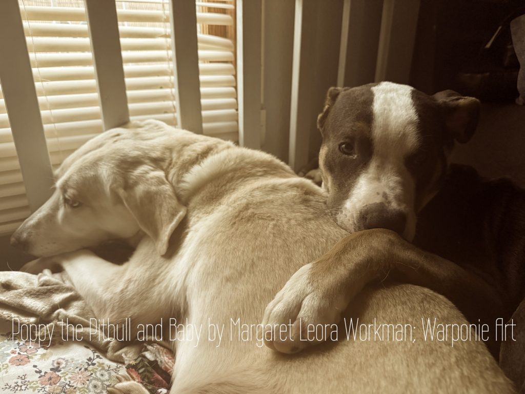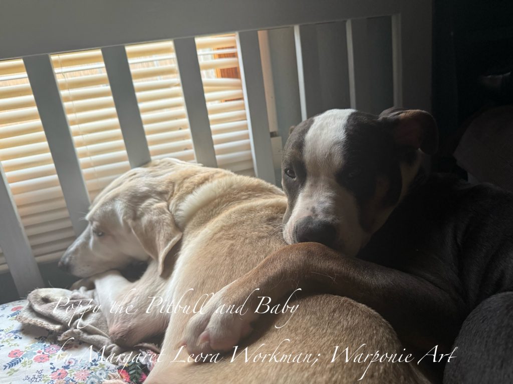 Poppy the Pitbull and Baby by Margaret Leora Workman; Warponie Art