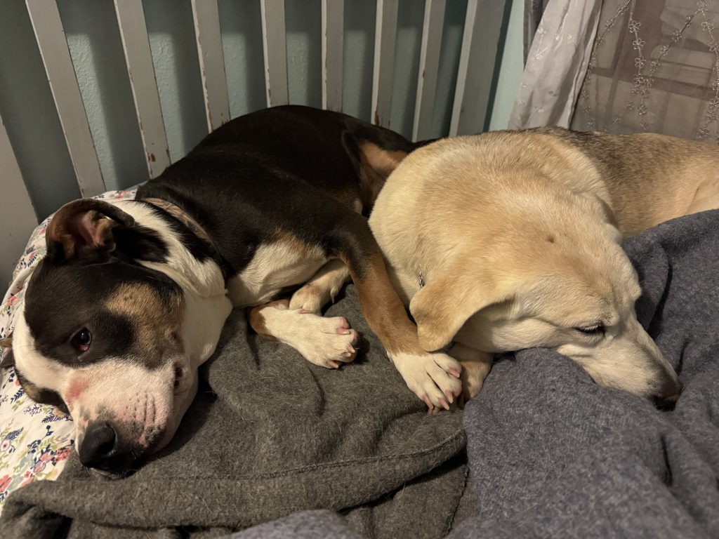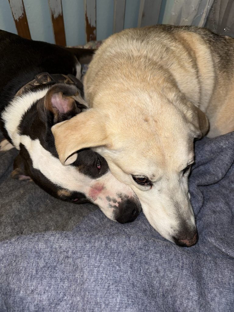 They really like each other. Poor Poppy keeps getting the hair rubbed off of his face because of his gentle leader! I walked them today so it is worse now. Poor baby. It’s really a bear to walk them both but I want them to learn to do it. Last time I walked them was really horrible. I was lazy and did not put Baby’s gentle leader on and just used a collar. We were walking through the neighborhood. It was a huge disaster. They would not behave and Baby is just as bad as Poppy in wanting to run while they walk. There are chickens that live at a couple of streets down, and don’t forget two roosters at two different houses. I guess they decided on free ranging them. Such a cute group of free range chickens in their front yards with no fence. Baby really liked them and thinks that I am totally unfair to not let her chase them and eat them. I really thought we were going to get home in one piece, but right before we got home, Baby’s bitter feelings overtook her and she got out of her collar and booked it, down the alley. Of course there are people here and there watching me and Poppy run to catch her. It was like she was mocking me with her slow run, while I tried my hardest to just get close. When I felt like giving up she would sort of trot. So then Poppy decided to pull me along to catch her. He is a majorly fast runner and I wouldn’t have caught Baby if Poppy hadn’t pulled me. I headed Baby off and got her. I know that she would have eventually taken a chicken out.