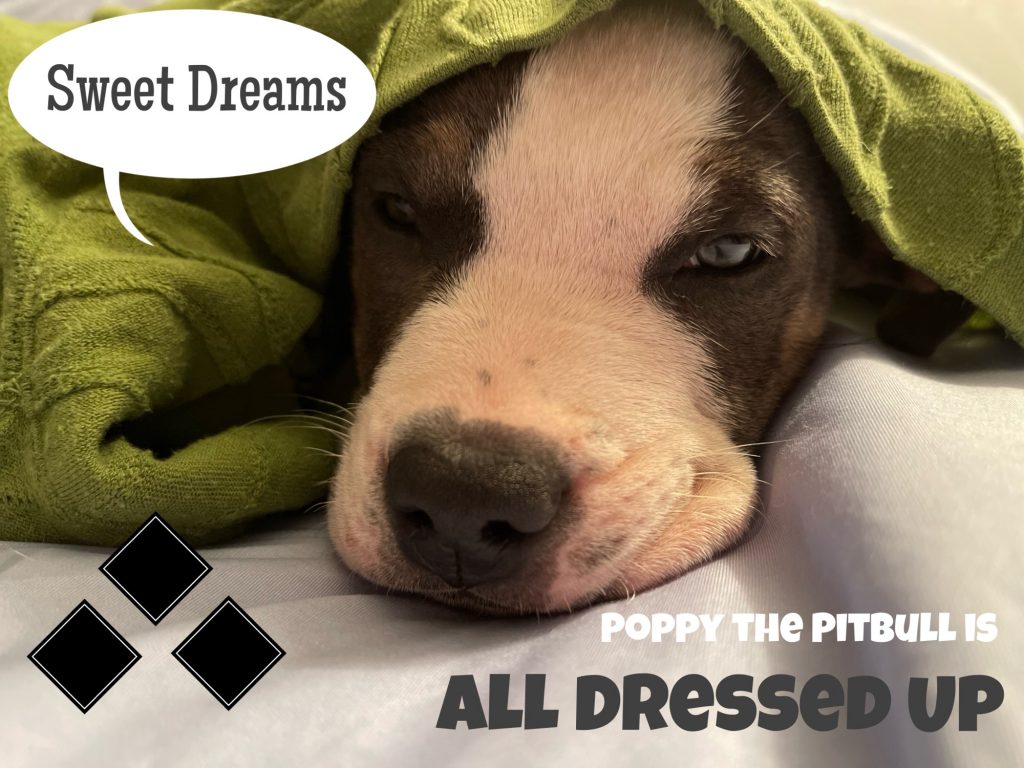 Poppy the Pitbull is an extremely stubborn puppy! I think that is a very good trait to have in a dog. He is extremely intelligent and he doesn’t want me to be in control of him and I really like that. He is a challenge for me to be able to figure out how to help him to be happy and to get along with society. To me that means not to bark unless it’s a worrisome situation. I hate walking through alleys to find dogs that are uncontrolled and barking like a crazy, crazy animal. It’s extremely scary! I went to the shelter here in town and all of the dogs there were in some sort of fear zone where they bark violently! And that is extreme scary. One thing that happened with Poppy that has changed things dramatically is I decided to have him sleep with me in my bed. I like to do that but it’s a bit of work and then my other dog will have to be free to be on my bed too. I have really bad allergies so that means they have to be bathed 90% of the time to get all of the dead grass etc.. off of them! More work! Maybe I am selfish! Anyway he sometimes wants off of the bed and that is not going to happen, because then it will be up and down all night. I have to train him to lay down the whole night, but it’s possible. Now because he has been sleeping with me he now will walk on a leash and come to me when I tell him to come! A huge success! That will lead to other successful training situations!!