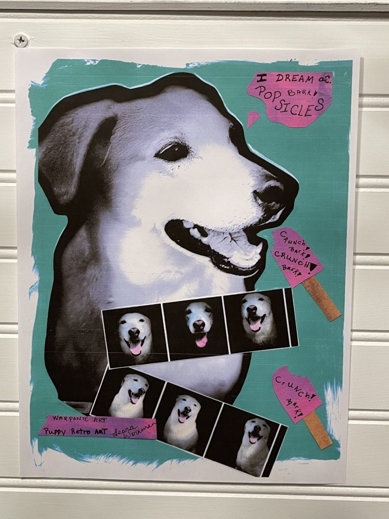 For this type of Art I took pictures of my dog, printed them and cut around their head and placed it and other things on paper that I had painted. Then take a picture of it and print it and that becomes the print. Warponie Art