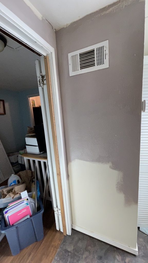 It doesn’t look too purple. Here is the gray/blue as well. I thought about this for a headboard but I don’t like it. I will change it tomorrow.