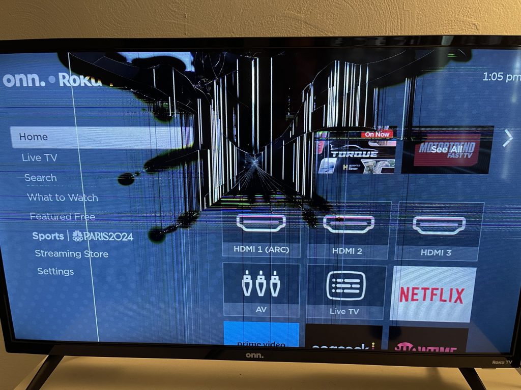 Ruining my television shouldn’t have happened. The Roku community television. it’s like someone dug a pin or pen into it! Um why??
