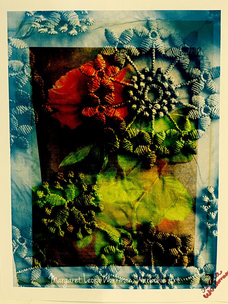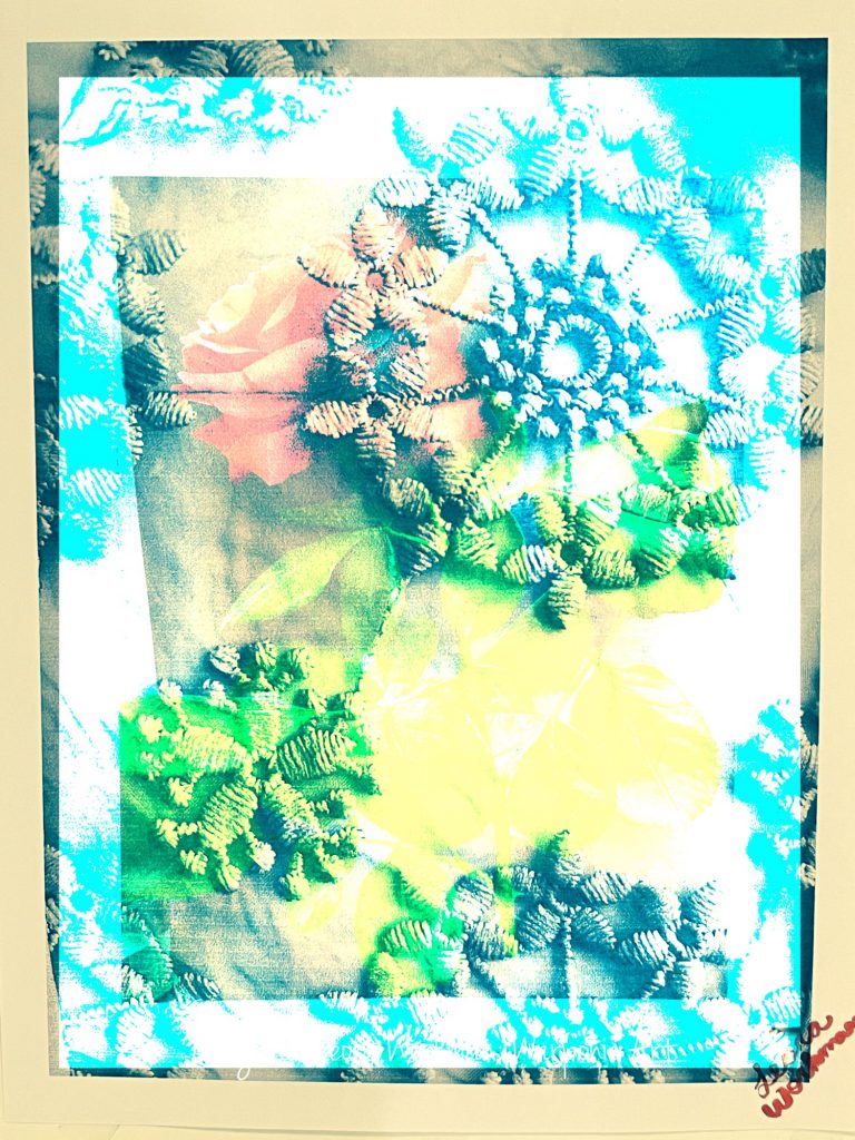 The bottom two pictures are separate pictures that I took. I put them together in phonto. Just choose the bottom picture and sometimes if you choose a different color for the bottom picture the picture that you add on top will be a different color. So then click on the bottom left icon and choose add item. Choose a pic to add. It will be small but you can change the size. Click on the small picture click blend, click a choice and you can keep clicking on choices to get different colors for the top pic. When you add text you can only click on the bottom picture to add text, then resize the top picture to what you want. All of the pictures above are the same two pictures and added in the same order but I just picked some of the choices that they had.