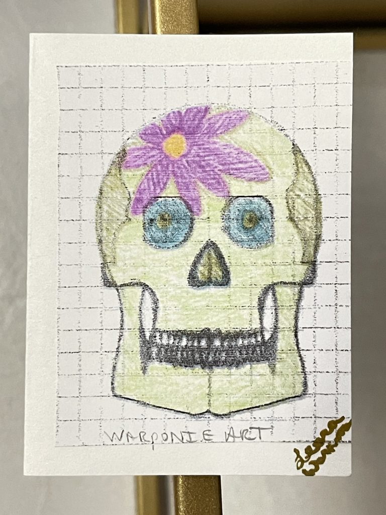 I drew this skull using a ruler and some free hand from a picture of a real skull. I just wanted to see if I could do it that way. I had an anatomy book that I got from a thrift store. I made it into a card. I drew it on graph paper