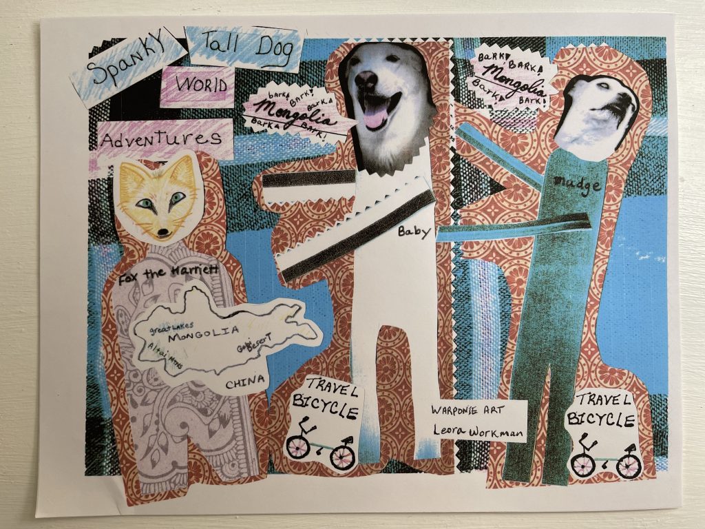 I love my dogs! I wanted to involve them in my art so I envisioned them traveling around the world. This was some time ago and I imagined that my dogs were really bored at home since I live in town.