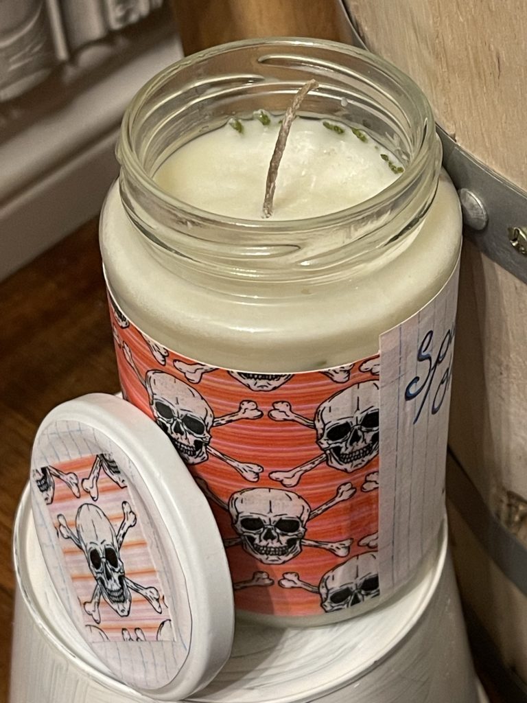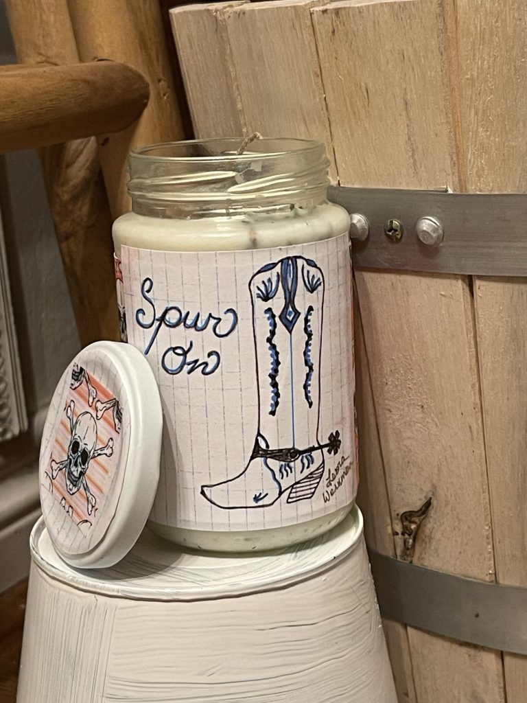 I made this candle a few years ago. I used a mushroom jar. I used soy wax beads and melted them. I have this tree in my yard, juniper? I put some fresh juniper in the jar and then poured in the soy wax. Don’t forget the wick! I also did the same thing with some empty cans that had vegetables. They would be more like camping candles. These burn really hot, hot! The flames get extremely high as well but the hours that these candles have are doubled! Compared to regular candles! It’s because I added the juniper leaves. Are these leaves?? I did burn the glass candle inside but on a high shelf. I only burned the can candles outside though. For the outside I took a picture of this fabric that I bought online and printed it. Then I drew the boot from a picture that I found. I believe that I used double sided tape and taped it all onto the glass jar and the lid. If you just want a nice, tame candle just don’t add the juniper leaves, maybe natural rose petals? Candles, in my opinion, are expensive to make but some are easy, and can be fun to make together especially if you have something fun to put on the outside. When I made these I was thinking of a cowboy Halloween rodeo theme. Halloween is right around the corner! There are so many fun Halloween crafts to make!
