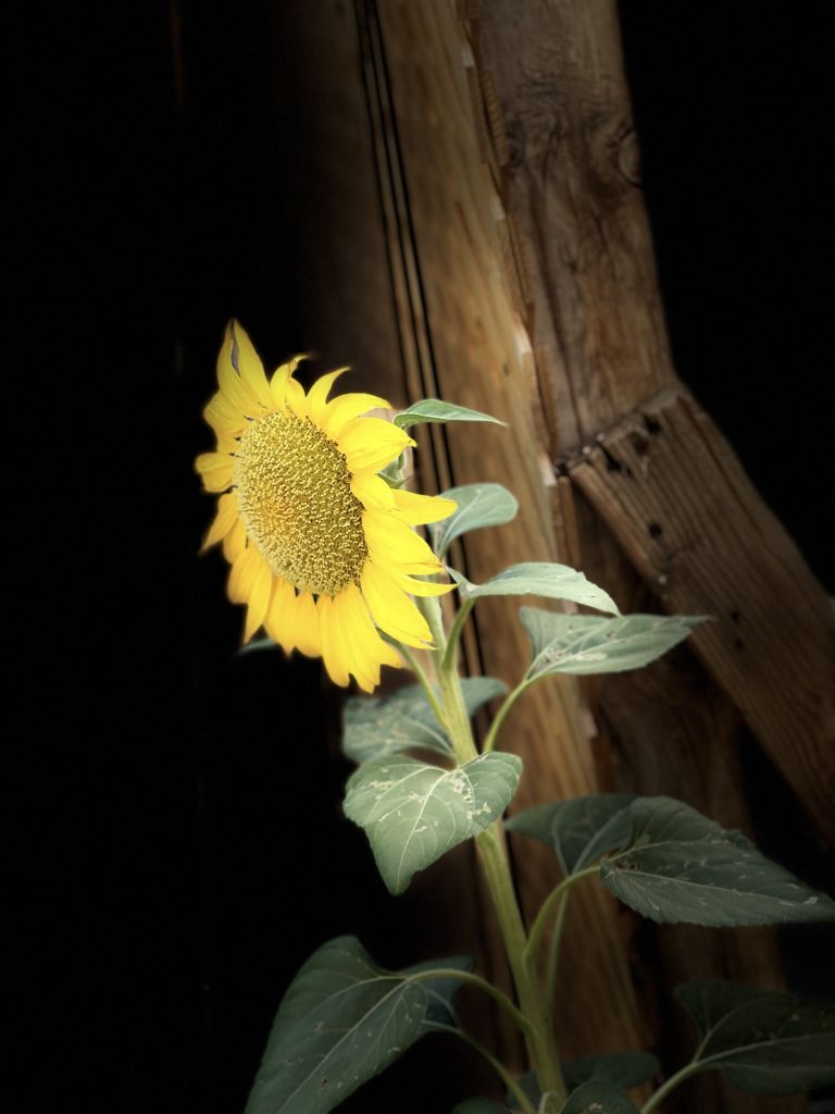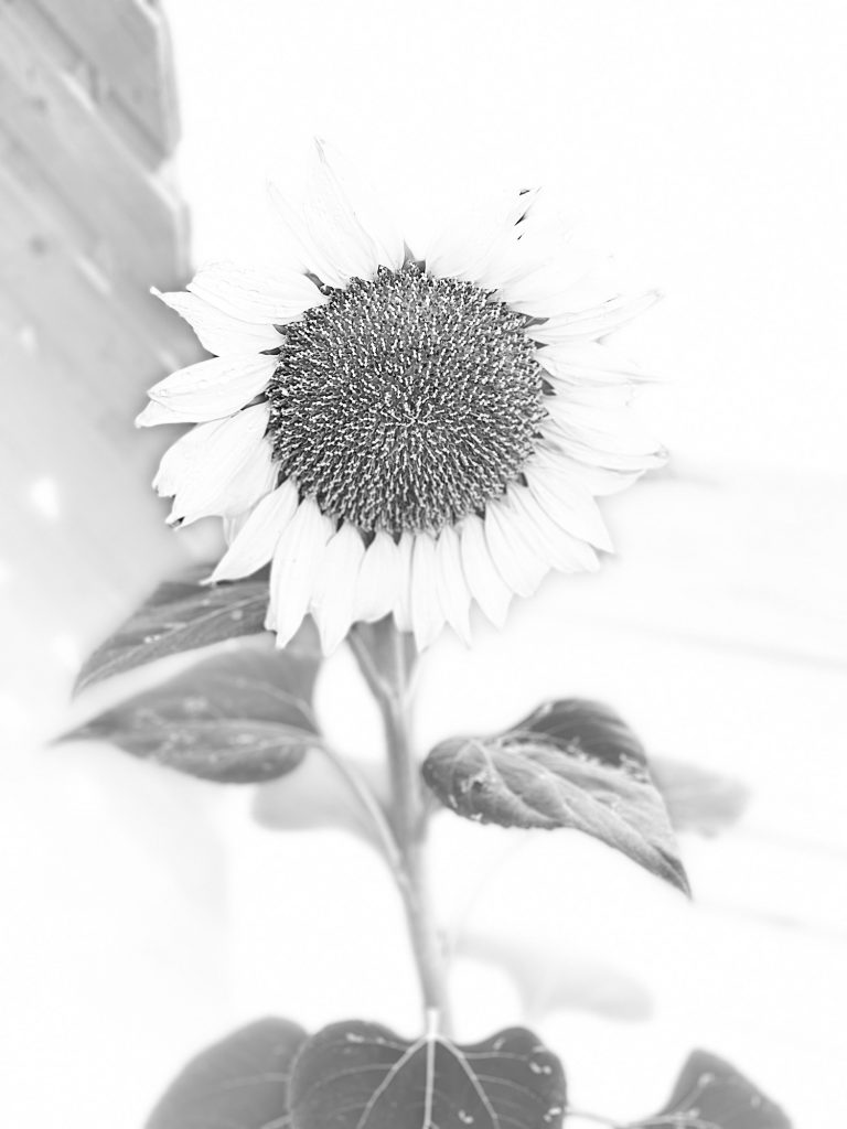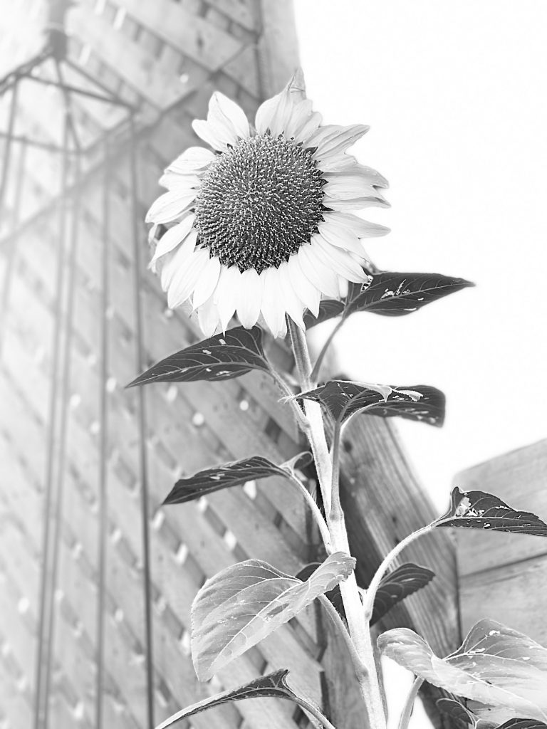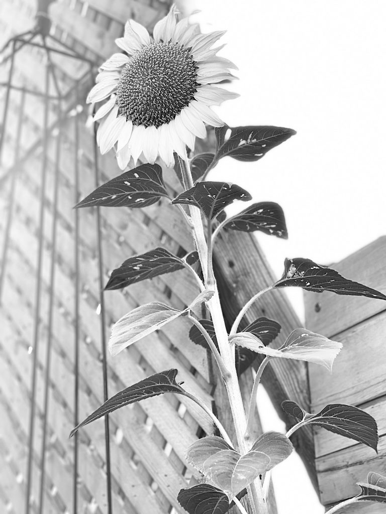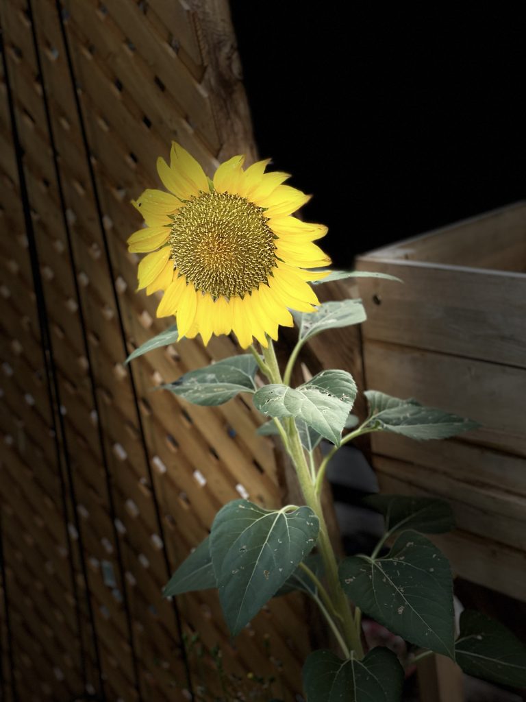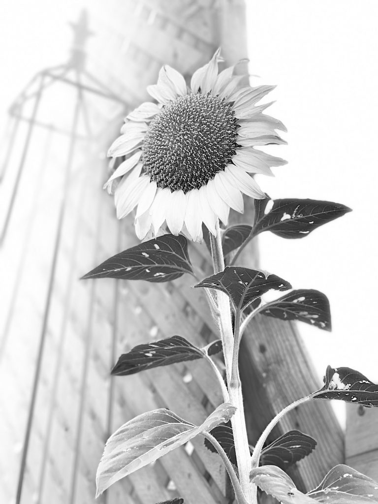 This is the sunflower that came up this summer unexpectedly in my yard. I feed the doves and other birds chicken feed and birdseed and that has sunflower seeds. I also have a few mice that eat all of that and so these seeds get carried along….
